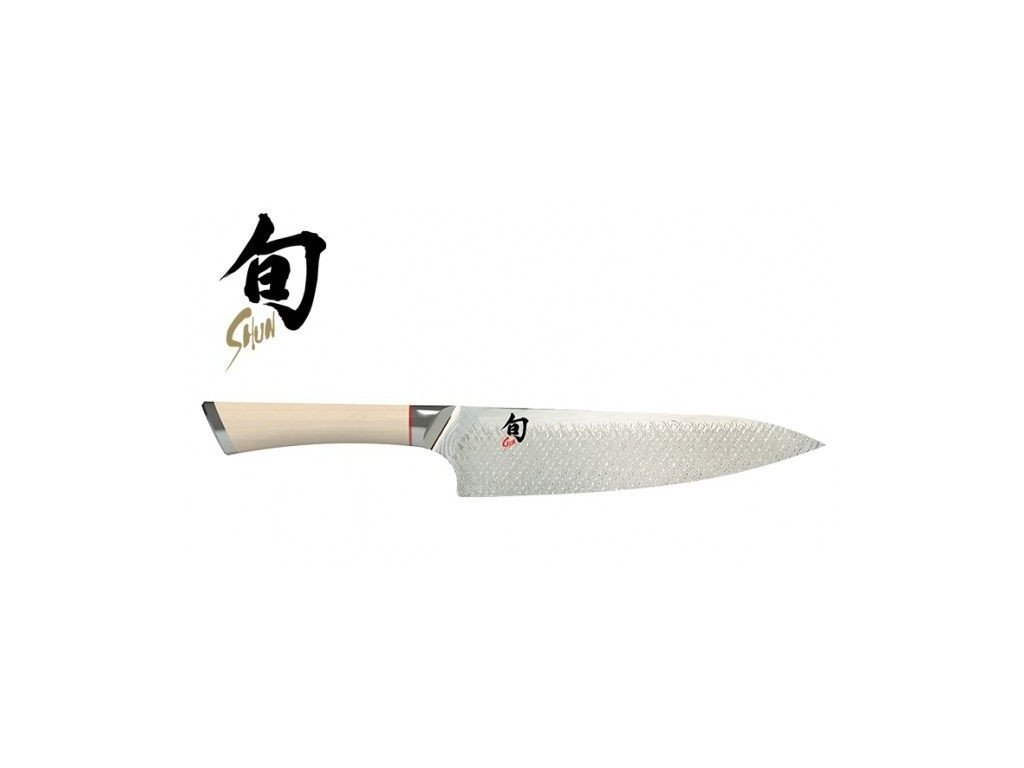 Nůž šéfkuchaře - Gyuto - je nepostradatelným pomocníkem každého kuchaře. Délka čepele - 210mm - je dostatečná pro krájení i plátkování. Pokročilá technologie výroby od společnosti Takefu Special Steel Company umožnila kování dvou různých ocelí VG-10 a VG-2. Mikro tenké (30 až 40 mikrometrů) pláty oceli VG-10 a VG-10 jsou střídavě vrstvené a kované opakovaným skládáním, aby mohla vzniknout tato jedinečná damašková ocel. Jedná se o stejný proces výroby jako je výroba mečů.