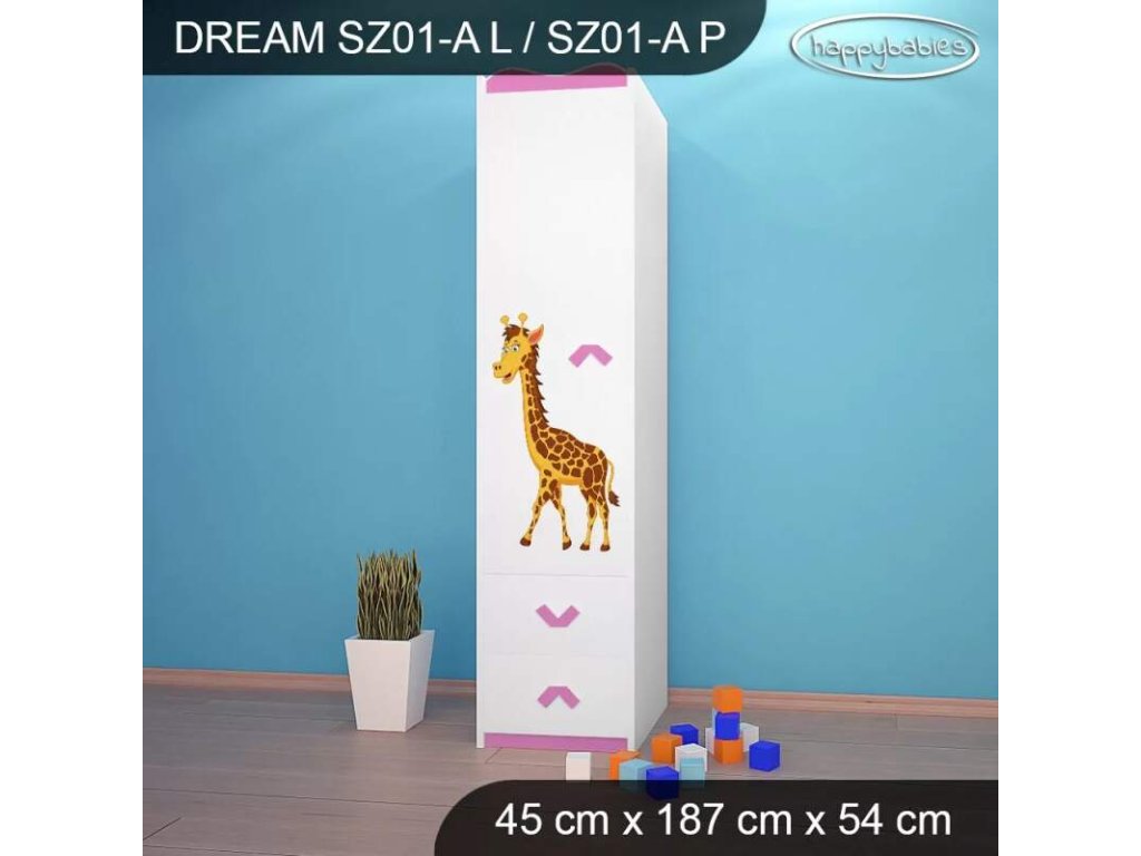 Šatní skříň je základním nábytkem v dětském pokojíčku. Nabízíme nepřeberné množství skříní. Vybírat můžete z obrovské škály vzorů , barev a velikostí. Můžete si vybrat, zda chcete pouze šatní tyč nebo poličky. Variantu si vyberete u objednávky. Materiál: lamino 18 mm Barva: růžová, bílá, wenge, hruška, zelená, modrá Rozměr: 45 cm x 187 cm x 54 cm Ve stejném motivu si můžete zakoupit také komodu, regál, knihovnu, psací stůl, noční stolek, box na hračky nebo poličku.Buďte první, kdo napíše příspěvek k této položce.