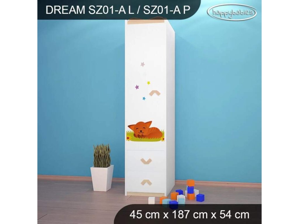 Šatní skříň je základním nábytkem v dětském pokojíčku. Nabízíme nepřeberné množství skříní. Vybírat můžete z obrovské škály vzorů , barev a velikostí. Můžete si vybrat, zda chcete pouze šatní tyč nebo poličky. Variantu si vyberete u objednávky. Materiál: lamino 18 mm Barva: růžová, bílá, wenge, hruška, zelená, modrá Rozměr: 45 cm x 187 cm x 54 cm Ve stejném motivu si můžete zakoupit také komodu, regál, knihovnu, psací stůl, noční stolek, box na hračky nebo poličku.Buďte první, kdo napíše příspěvek k této položce.