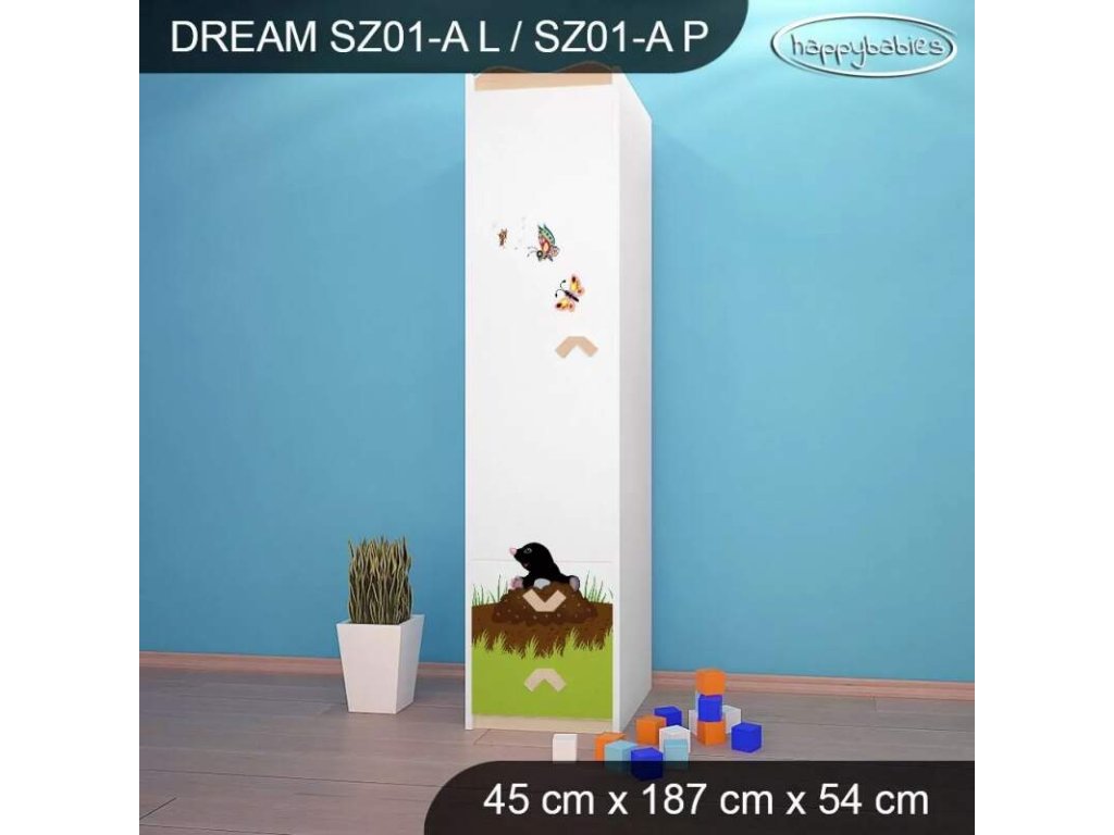 Šatní skříň je základním nábytkem v dětském pokojíčku. Nabízíme nepřeberné množství skříní. Vybírat můžete z obrovské škály vzorů , barev a velikostí. Můžete si vybrat, zda chcete pouze šatní tyč nebo poličky. Variantu si vyberete u objednávky. Materiál: lamino 18 mm Barva: růžová, bílá, wenge, hruška, zelená, modrá Rozměr: 45 cm x 187 cm x 54 cm Ve stejném motivu si můžete zakoupit také komodu, regál, knihovnu, psací stůl, noční stolek, box na hračky nebo poličku.Buďte první, kdo napíše příspěvek k této položce.