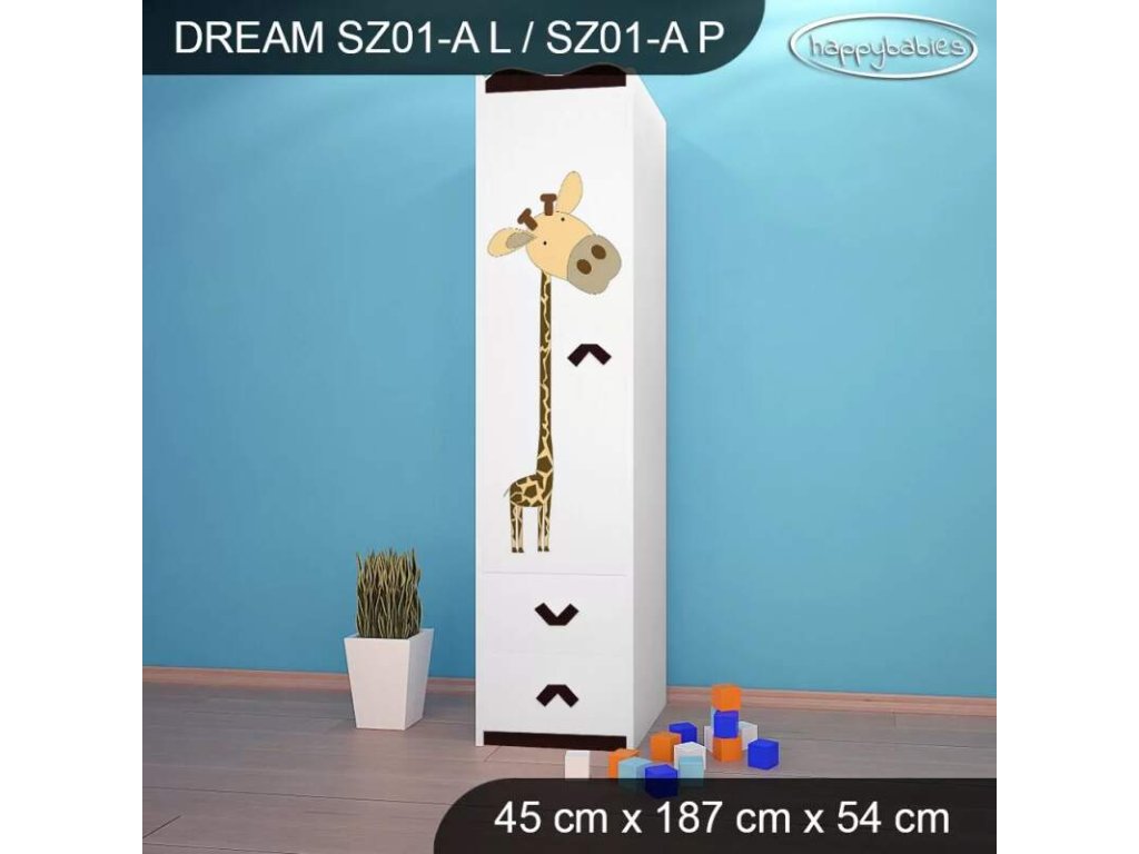 Šatní skříň je základním nábytkem v dětském pokojíčku. Nabízíme nepřeberné množství skříní. Vybírat můžete z obrovské škály vzorů , barev a velikostí. Můžete si vybrat, zda chcete pouze šatní tyč nebo poličky. Variantu si vyberete u objednávky. Materiál: lamino 18 mm Barva: růžová, bílá, wenge, hruška, zelená, modrá Rozměr: 45 cm x 187 cm x 54 cm Ve stejném motivu si můžete zakoupit také komodu, regál, knihovnu, psací stůl, noční stolek, box na hračky nebo poličku.Buďte první, kdo napíše příspěvek k této položce.