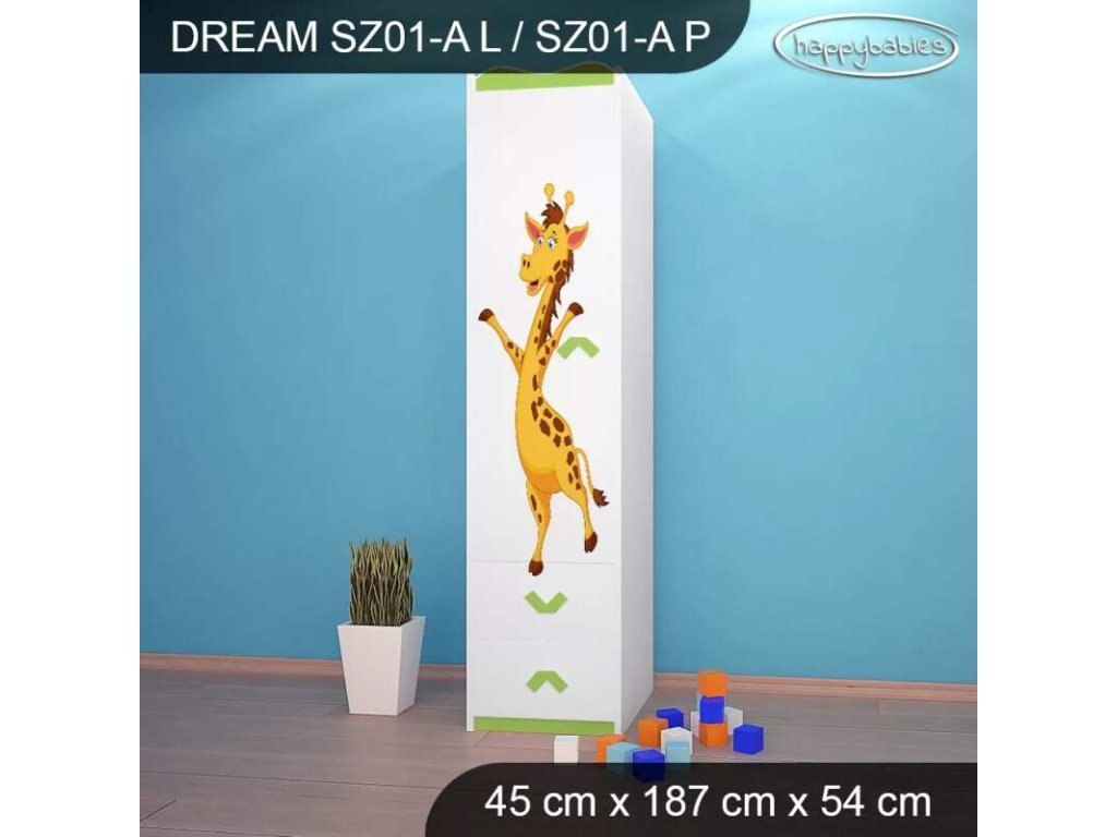 Šatní skříň je základním nábytkem v dětském pokojíčku. Nabízíme nepřeberné množství skříní. Vybírat můžete z obrovské škály vzorů , barev a velikostí. Můžete si vybrat, zda chcete pouze šatní tyč nebo poličky. Variantu si vyberete u objednávky. Materiál: lamino 18 mm Barva: růžová, bílá, wenge, hruška, zelená, modrá Rozměr: 45 cm x 187 cm x 54 cm Ve stejném motivu si můžete zakoupit také komodu, regál, knihovnu, psací stůl, noční stolek, box na hračky nebo poličku.Buďte první, kdo napíše příspěvek k této položce.