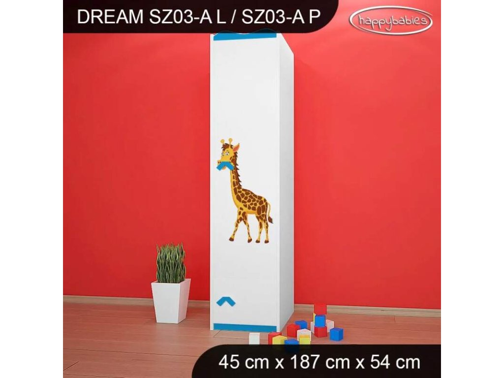 Šatní skříň je základním nábytkem v dětském pokojíčku. Nabízíme nepřeberné množství skříní. Vybírat můžete z obrovské škály vzorů, barev a velikostí. Můžete si vybrat, zda chcete pouze šatní tyč nebo poličky. Variantu si vyberete u objednávky. Materiál: lamino 18 mm Barva: růžová, bílá, wenge, hruška, zelená, modrá, Rozměr: 45 cm x 187 cm x 54 cm Ve stejném motivu si můžete zakoupit také komodu, regál, knihovnu, psací stůl, noční stolek, box na hračky nebo poličku.Buďte první, kdo napíše příspěvek k této položce.