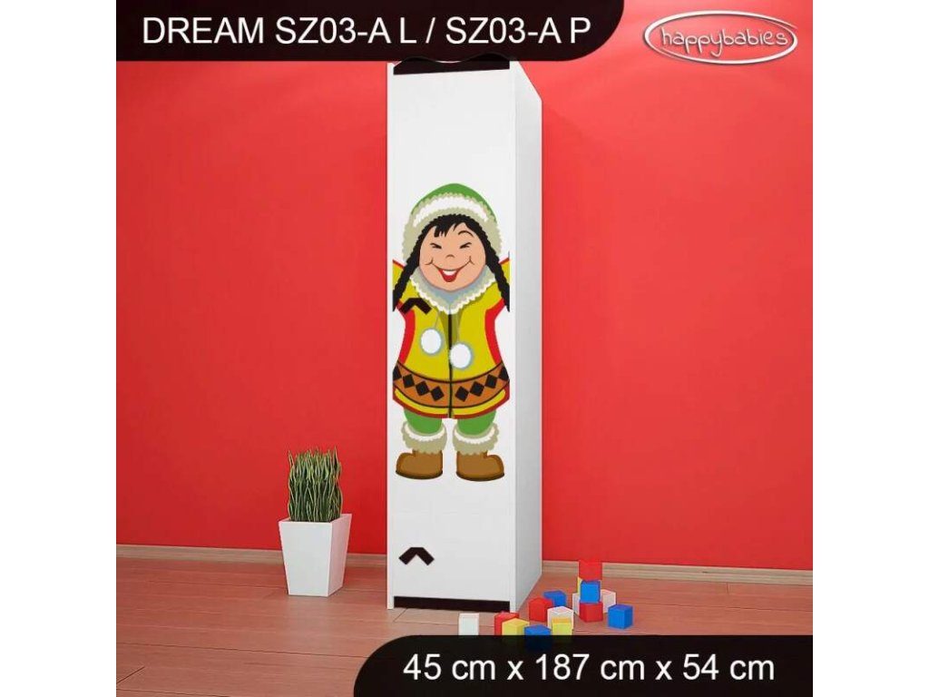 Šatní skříň je základním nábytkem v dětském pokojíčku. Nabízíme nepřeberné množství skříní. Vybírat můžete z obrovské škály vzorů, barev a velikostí. Můžete si vybrat, zda chcete pouze šatní tyč nebo poličky. Variantu si vyberete u objednávky. Materiál: lamino 18 mm Barva: růžová, bílá, wenge, hruška, zelená, modrá, Rozměr: 45 cm x 187 cm x 54 cm Ve stejném motivu si můžete zakoupit také komodu, regál, knihovnu, psací stůl, noční stolek, box na hračky nebo poličku.Buďte první, kdo napíše příspěvek k této položce.