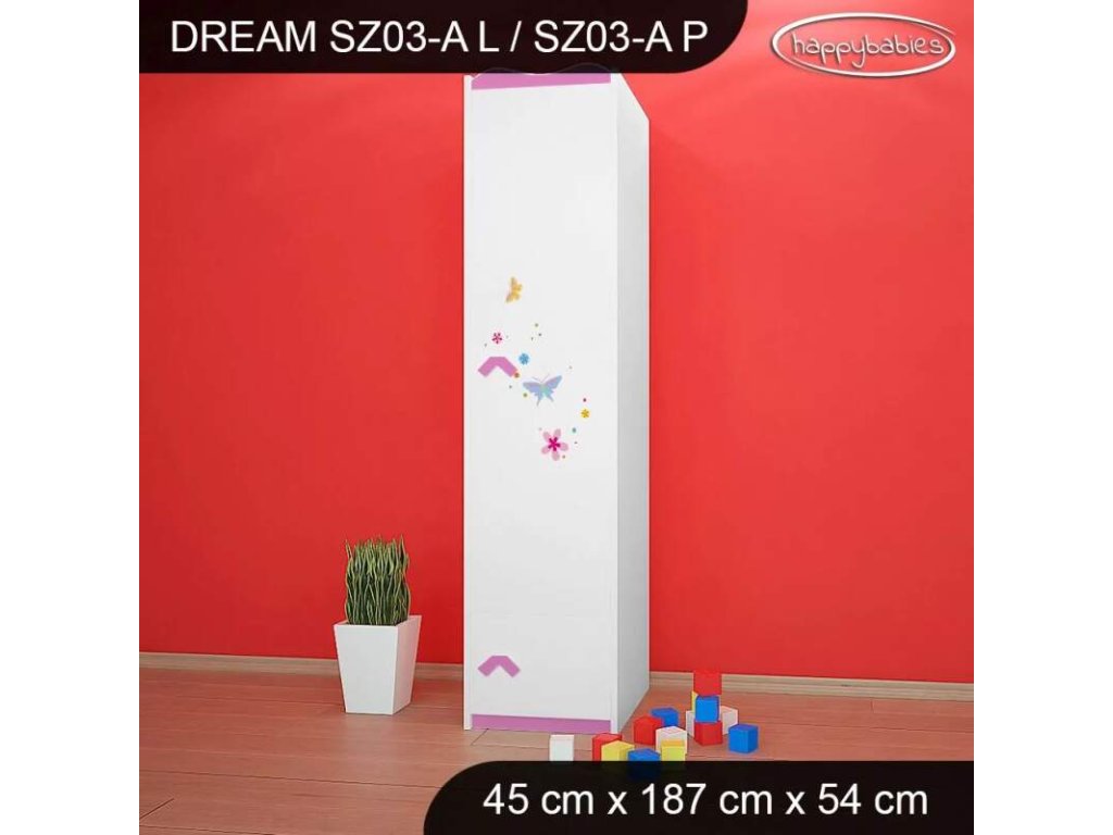 Šatní skříň je základním nábytkem v dětském pokojíčku. Nabízíme nepřeberné množství skříní. Vybírat můžete z obrovské škály vzorů, barev a velikostí. Můžete si vybrat, zda chcete pouze šatní tyč nebo poličky. Variantu si vyberete u objednávky. Materiál: lamino 18 mm Barva: růžová, bílá, wenge, hruška, zelená, modrá, Rozměr: 45 cm x 187 cm x 54 cm Ve stejném motivu si můžete zakoupit také komodu, regál, knihovnu, psací stůl, noční stolek, box na hračky nebo poličku.Buďte první, kdo napíše příspěvek k této položce.