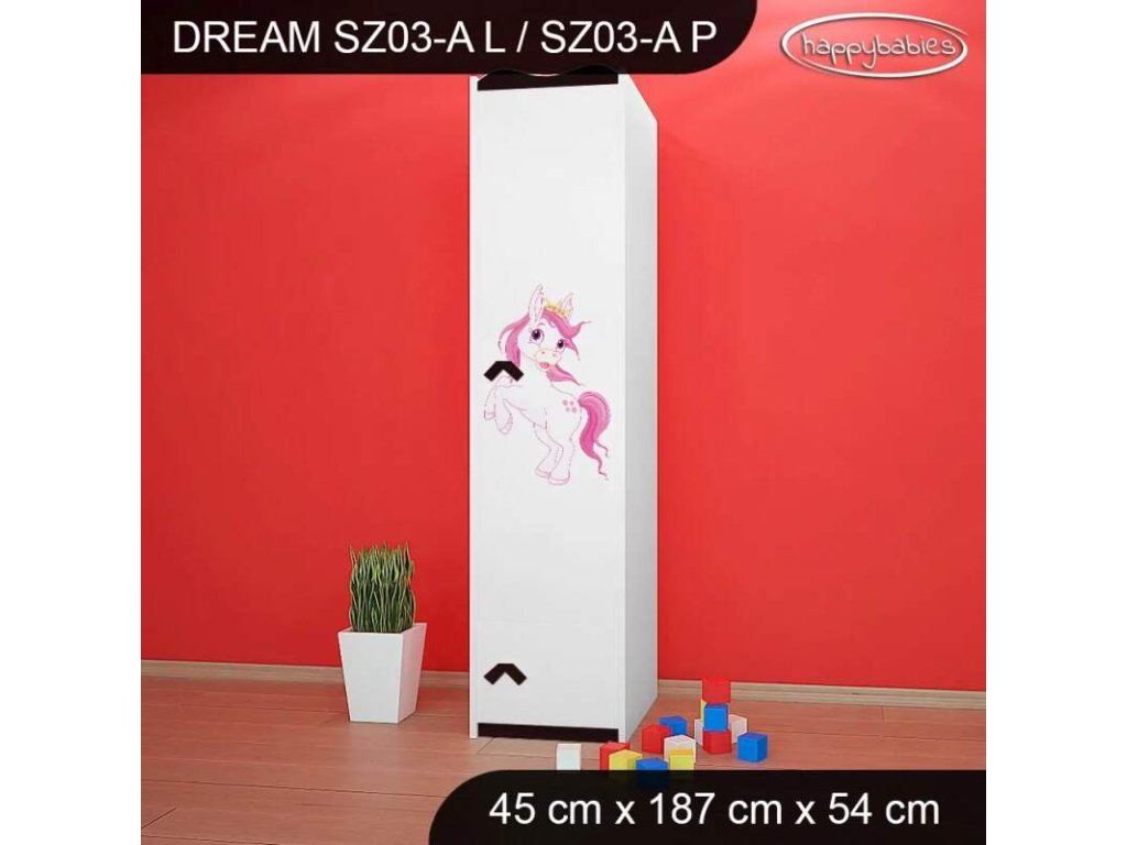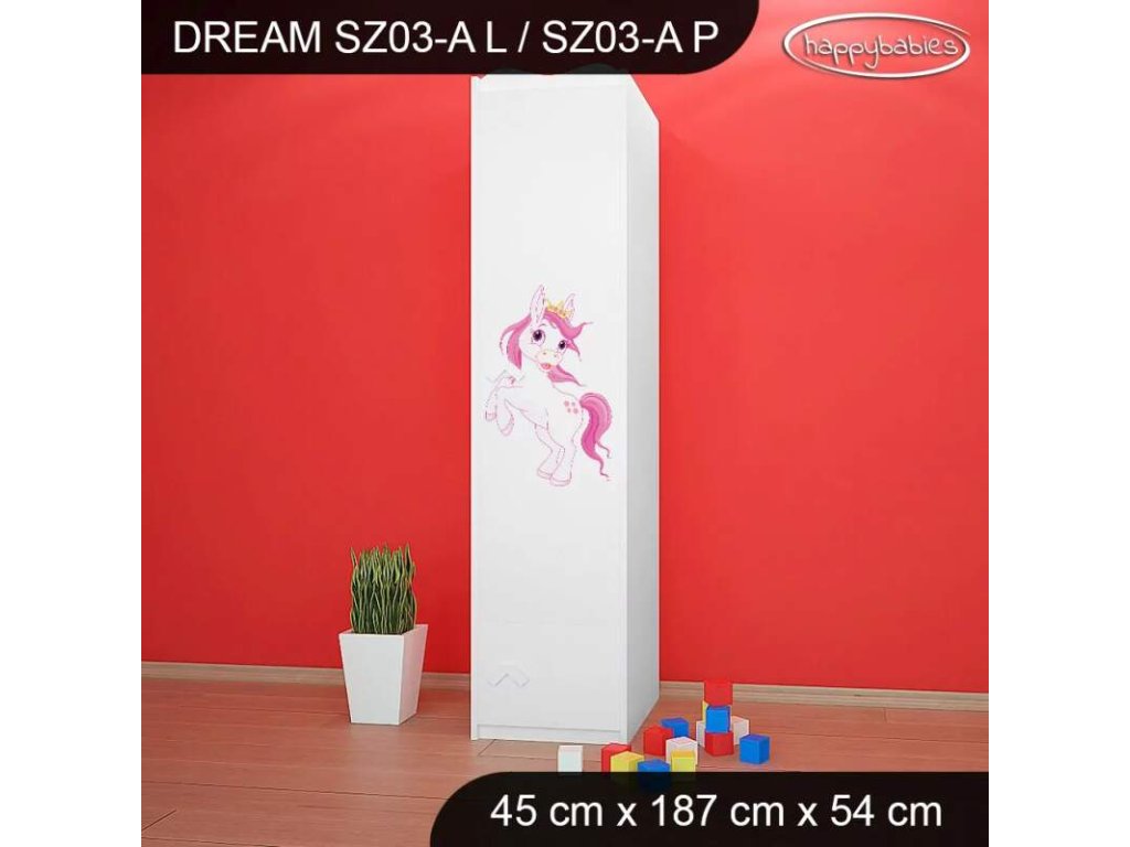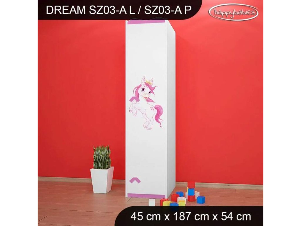 Šatní skříň je základním nábytkem v dětském pokojíčku. Nabízíme nepřeberné množství skříní. Vybírat můžete z obrovské škály vzorů, barev a velikostí. Můžete si vybrat, zda chcete pouze šatní tyč nebo poličky. Variantu si vyberete u objednávky. Materiál: lamino 18 mm Barva: růžová, bílá, wenge, hruška, zelená, modrá, Rozměr: 45 cm x 187 cm x 54 cm Ve stejném motivu si můžete zakoupit také komodu, regál, knihovnu, psací stůl, noční stolek, box na hračky nebo poličku.Buďte první, kdo napíše příspěvek k této položce.