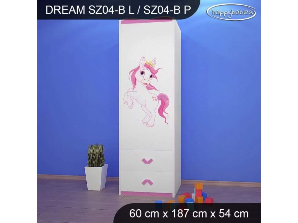 Šatní skříň je základním nábytkem v dětském pokojíčku. Nabízíme nepřeberné množství skříní. Vybírat můžete z obrovské škály vzorů , barev a velikostí. Můžete si vybrat, zda chcete pouze šatní tyč nebo poličky. Materiál: lamino 18 mm Barva: růžová, bílá, kaštan wenge, hruška, zelená, modrá Rozměr: 60 cm x 187 cm x 54 cm Ve stejném motivu si můžete zakoupit také komodu, regál, knihovnu, psací stůl, noční stolek, box na hračky nebo poličku.Buďte první, kdo napíše příspěvek k této položce.