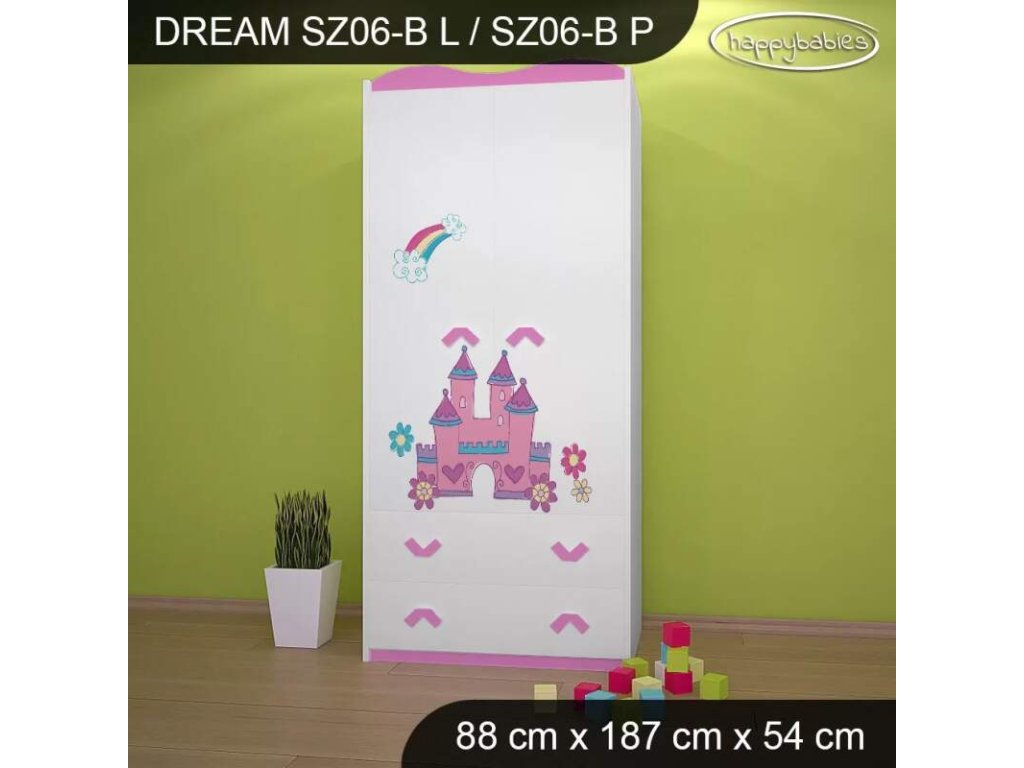 Šatní skříň je základním nábytkem v dětském pokojíčku. Nabízíme nepřeberné množství skříní. Vybírat můžete z obrovské škály vzorů , barev a velikostí. Můžete si vybrat, zda chcete pouze šatní tyč nebo poličky. Variantu si vyberete u objednávky. Materiál: lamino 18 mm Barva: růžová, bílá, wenge, hruška, zelená, modrá, Rozměr: 88 cm x 187 cm x 54 cm Ve stejném motivu si můžete zakoupit také komodu, regál, knihovnu, psací stůl, noční stolek, box na hračky nebo poličku.Buďte první, kdo napíše příspěvek k této položce.