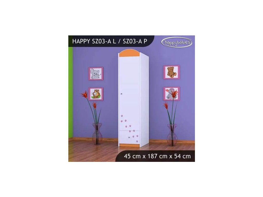 Šatní skříň je základním nábytkem v dětském pokojíčku. Nabízíme nepřeberné množství skříní. Vybírat můžete z obrovské škály vzorů, barev a velikostí. Můžete si vybrat, zda chcete pouze šatní tyč nebo poličky. Variantu si vyberete u objednávky. Materiál: lamino 18 mm Barva: růžová, bílá, kaštan wenge, kalvados, buk, hruška, zelená, modrá, oranžová Rozměr: 45 cm x 187 cm x 54 cm Ve stejném motivu si můžete zakoupit také komodu, regál, knihovnu, psací stůl, noční stolek, box na hračky nebo poličku.Buďte první, kdo napíše příspěvek k této položce.