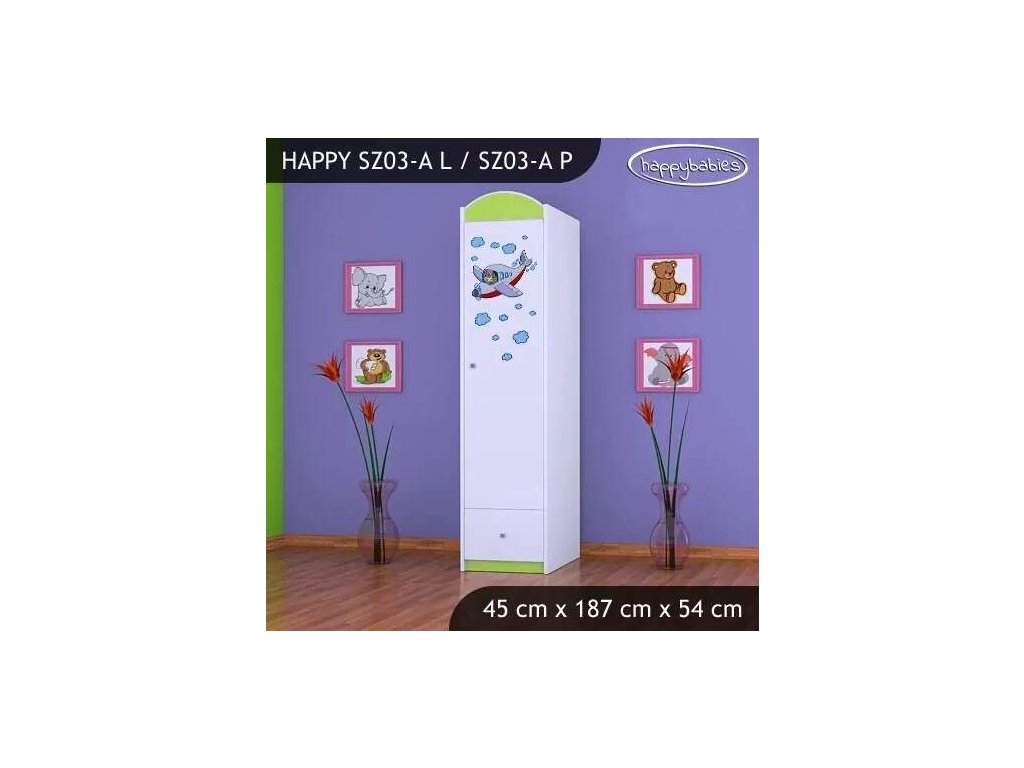 Šatní skříň je základním nábytkem v dětském pokojíčku. Nabízíme nepřeberné množství skříní. Vybírat můžete z obrovské škály vzorů, barev a velikostí. Můžete si vybrat, zda chcete pouze šatní tyč nebo poličky. Variantu si vyberete u objednávky. Materiál: lamino 18 mm Barva: růžová, bílá, kaštan wenge, kalvados, buk, hruška, zelená, modrá, oranžová Rozměr: 45 cm x 187 cm x 54 cm Ve stejném motivu si můžete zakoupit také komodu, regál, knihovnu, psací stůl, noční stolek, box na hračky nebo poličku.Buďte první, kdo napíše příspěvek k této položce.