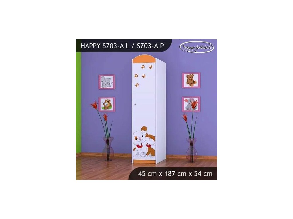 Šatní skříň je základním nábytkem v dětském pokojíčku. Nabízíme nepřeberné množství skříní. Vybírat můžete z obrovské škály vzorů, barev a velikostí. Můžete si vybrat, zda chcete pouze šatní tyč nebo poličky. Variantu si vyberete u objednávky. Materiál: lamino 18 mm Barva: růžová, bílá, kaštan wenge, kalvados, buk, hruška, zelená, modrá, oranžová Rozměr: 45 cm x 187 cm x 54 cm Ve stejném motivu si můžete zakoupit také komodu, regál, knihovnu, psací stůl, noční stolek, box na hračky nebo poličku.Buďte první, kdo napíše příspěvek k této položce.