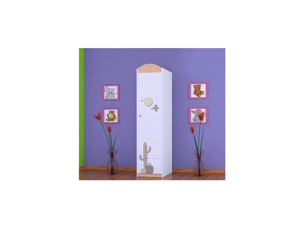 Šatní skříň je základním nábytkem v dětském pokojíčku. Nabízíme nepřeberné množství skříní. Vybírat můžete z obrovské škály vzorů, barev a velikostí. Můžete si vybrat, zda chcete pouze šatní tyč nebo poličky. Variantu si vyberete u objednávky. Materiál: lamino 18 mm Barva: růžová, bílá, kaštan wenge, kalvados, buk, hruška, zelená, modrá, oranžová Rozměr: 45 cm x 187 cm x 54 cm Ve stejném motivu si můžete zakoupit také komodu, regál, knihovnu, psací stůl, noční stolek, box na hračky nebo poličku.Buďte první, kdo napíše příspěvek k této položce.