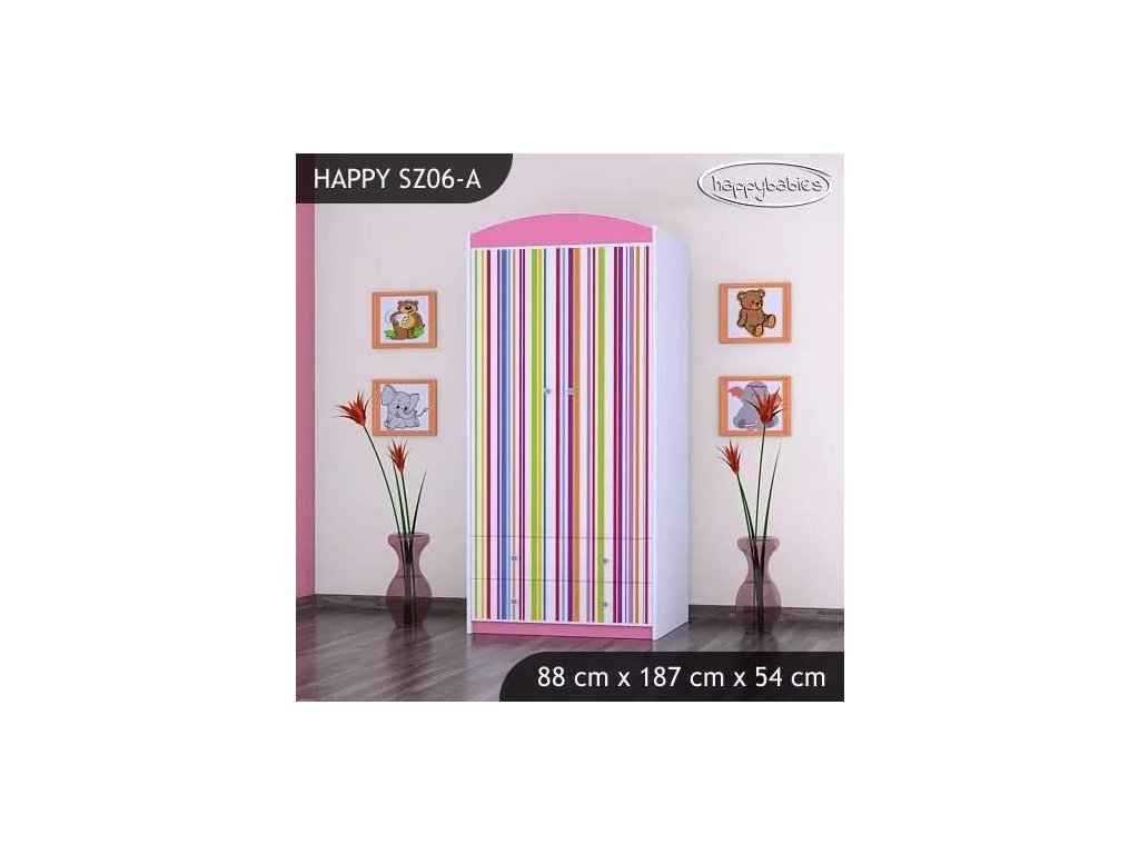 Šatní skříň je základním nábytkem v dětském pokojíčku. Nabízíme nepřeberné množství skříní. Vybírat můžete z obrovské škály vzorů , barev a velikostí. Můžete si vybrat, zda chcete pouze šatní tyč nebo poličky. Variantu si vyberete u objednávky. Materiál: lamino 18 mm Barva: růžová, bílá, kaštan wenge, kalvados, buk, hruška, zelená, modrá, oranžová Rozměr: 88 cm x 187 cm x 54 cm Ve stejném motivu si můžete zakoupit také komodu, regál, knihovnu, psací stůl, noční stolek, box na hračky nebo poličku.Buďte první, kdo napíše příspěvek k této položce.