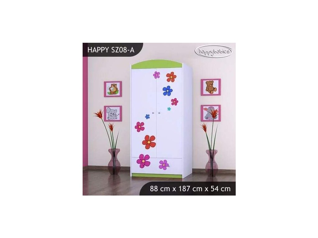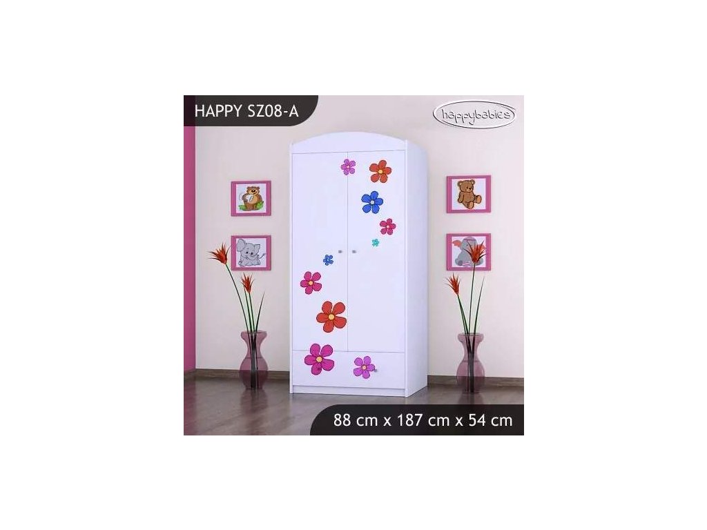 Šatní skříň je základním nábytkem v dětském pokojíčku. Nabízíme nepřeberné množství skříní. Vybírat můžete z obrovské škály vzorů , barev a velikostí. Můžete si vybrat, zda chcete pouze šatní tyč nebo šatní tyč v kombinaci s poličkami. Materiál: lamino 18 mm Barva: růžová, bílá, kaštan wenge, kalvados, buk, hruška, zelená, modrá, oranžová Rozměr: 88 cm x 187 cm x 54 cm Ve stejném motivu si můžete zakoupit také komodu, regál, knihovnu, psací stůl, noční stolek, box na hračky nebo poličku.Buďte první, kdo napíše příspěvek k této položce.