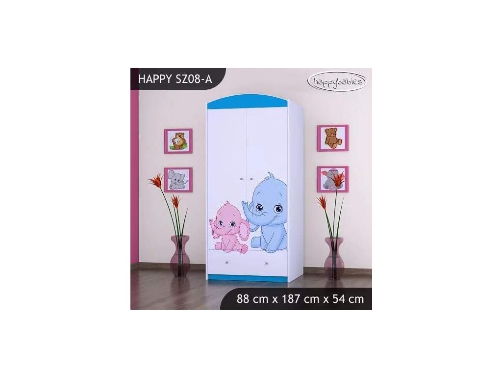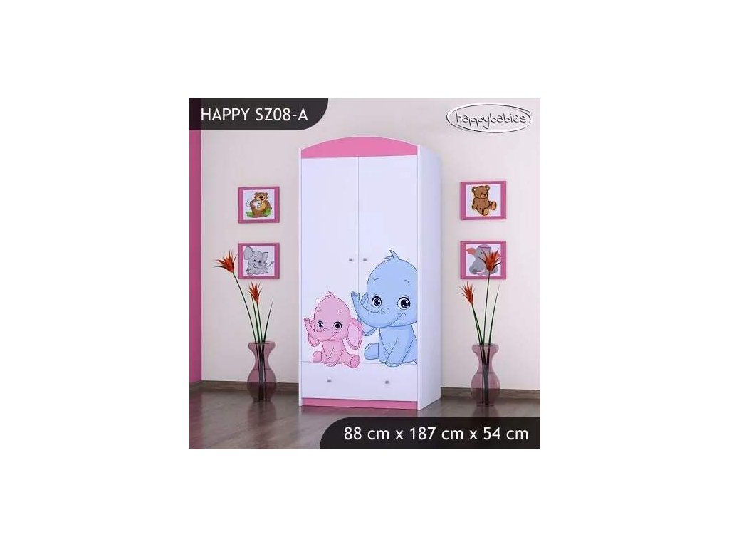 Skříň Happy SZ08 - růžový a modrý slon