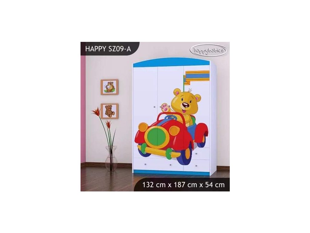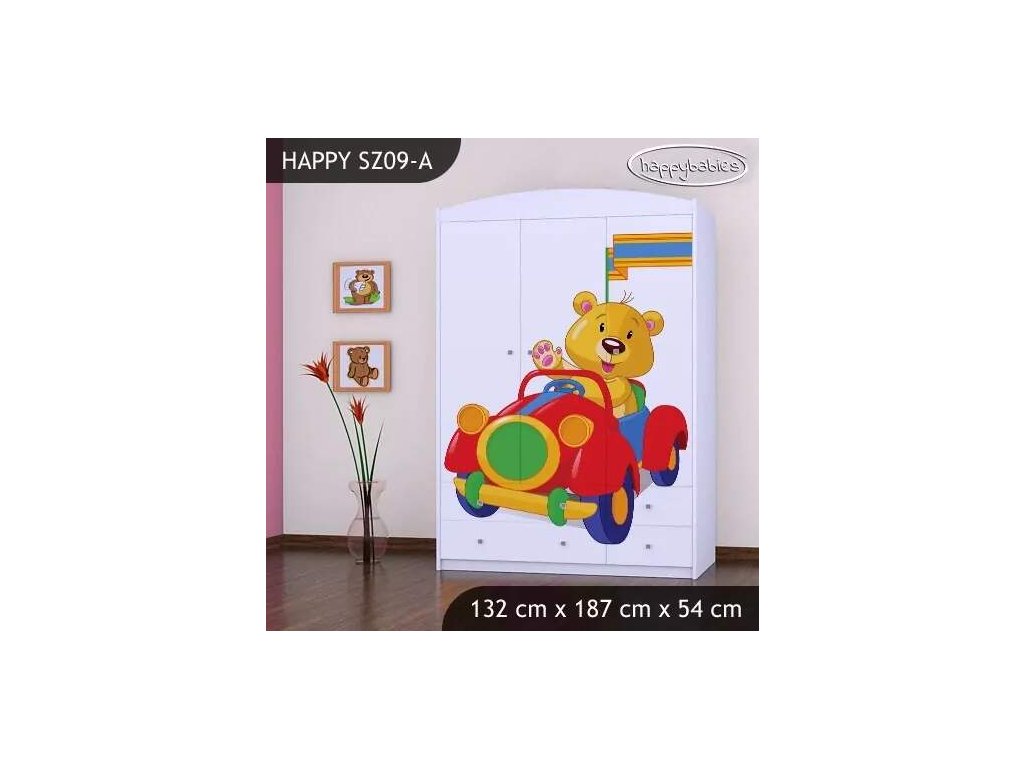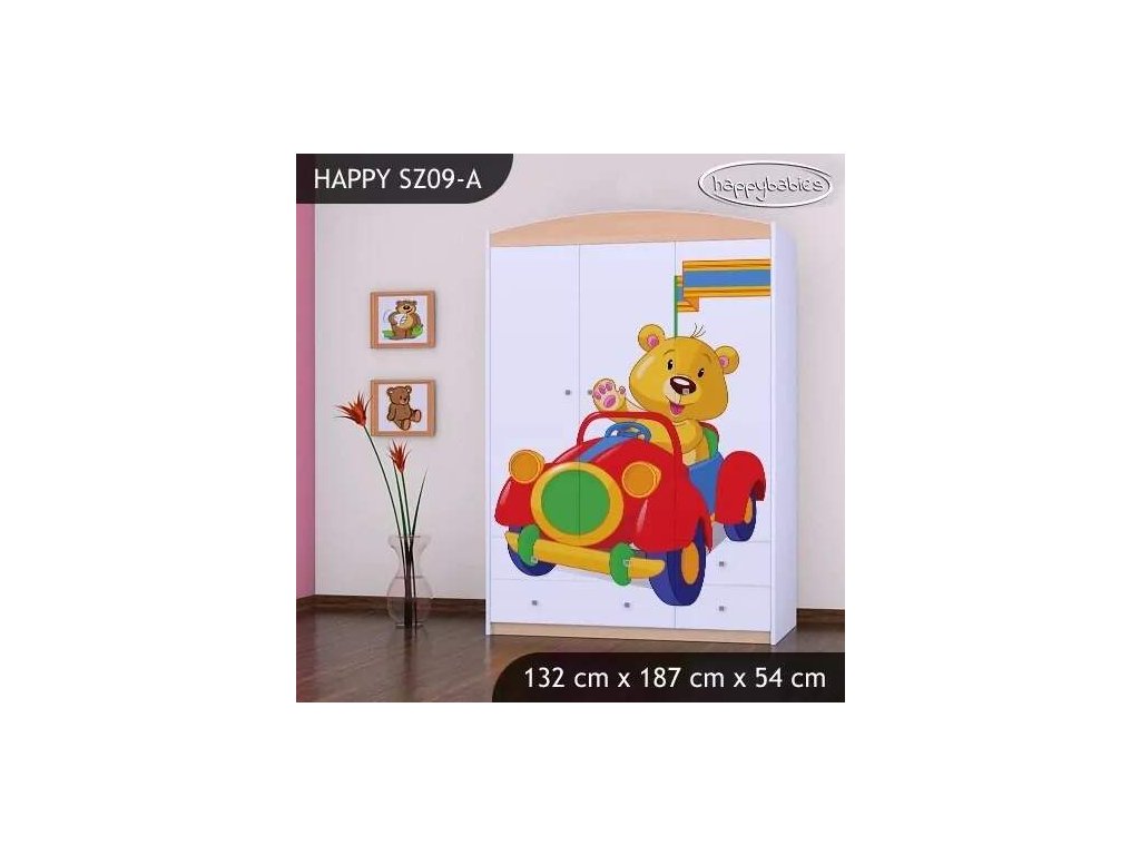 Skříň Happy SZ09 - medvídek v červeném autě
