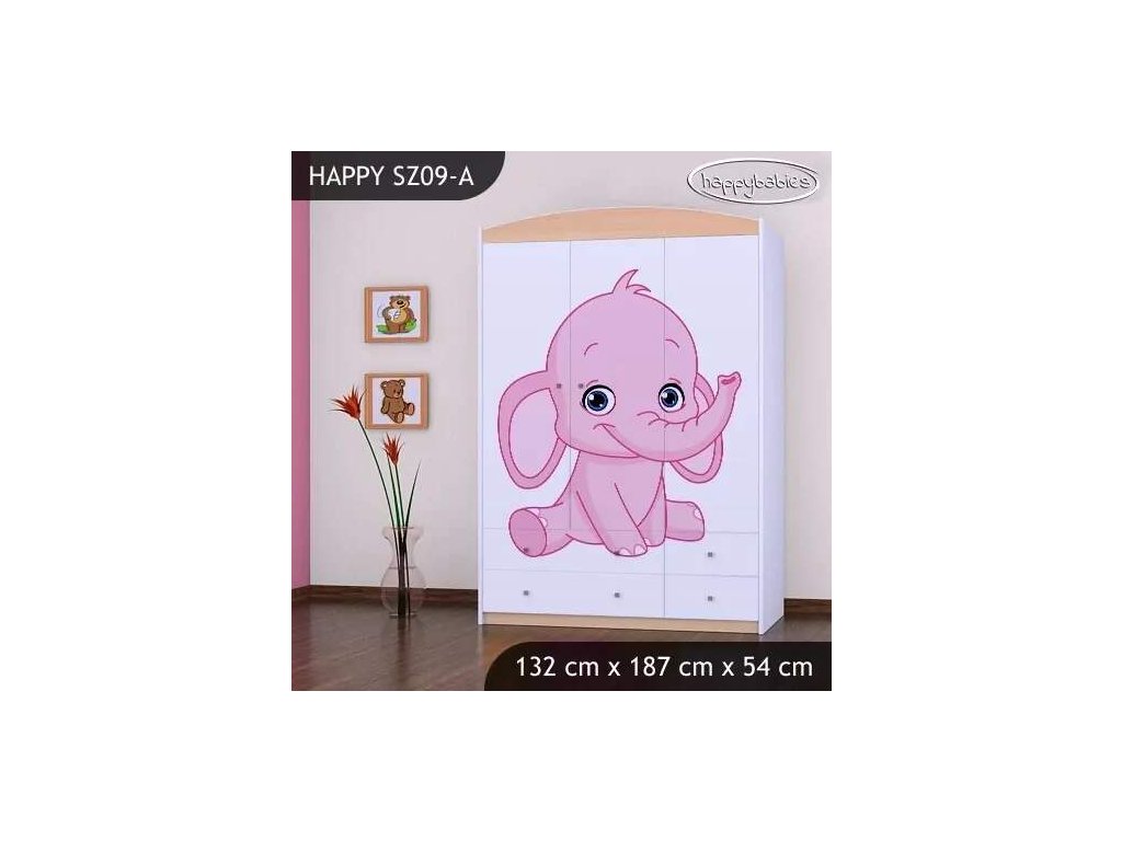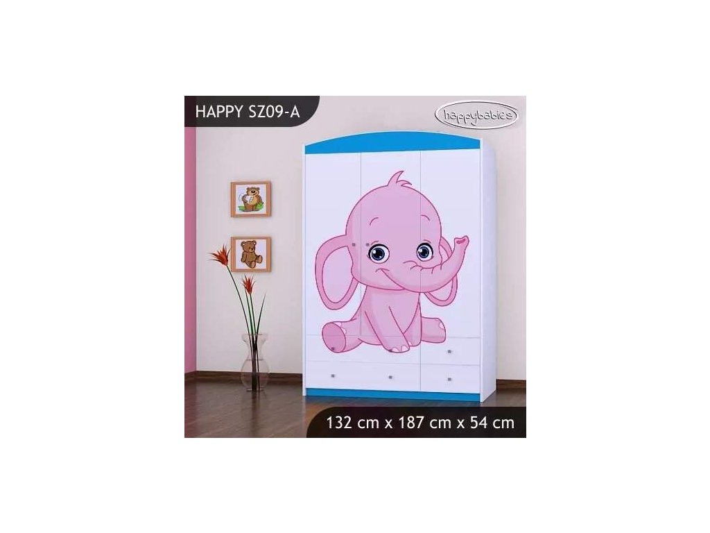 Skříň Happy SZ09 - růžový a modrý slon