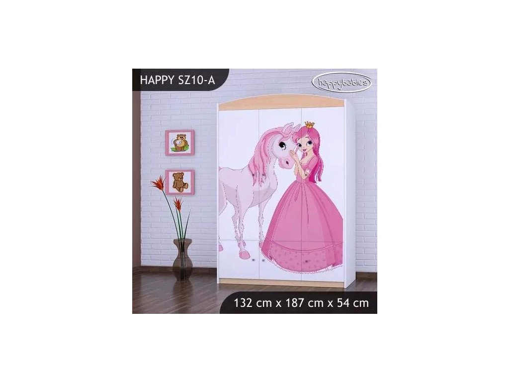 Šatní skříň je základním nábytkem v dětském pokojíčku. Nabízíme nepřeberné množství skříní. Vybírat můžete z obrovské škály vzorů , barev a velikostí. V případě zájmu o foto rozpoložení skříně uvnitř nám napište, rádi zašleme na email. Jedná se o kombinaci šatní tyče a poliček. Materiál: lamino 18 mm Barva: růžová, bílá, kaštan wenge, kalvados, buk, hruška, zelená, modrá, oranžová Rozměr: 132 cm x 187 cm x 54 cm Ve stejném motivu si můžete zakoupit také komodu, regál, knihovnu, psací stůl, noční stolek, box na hračky nebo poličku.Buďte první, kdo napíše příspěvek k této položce.