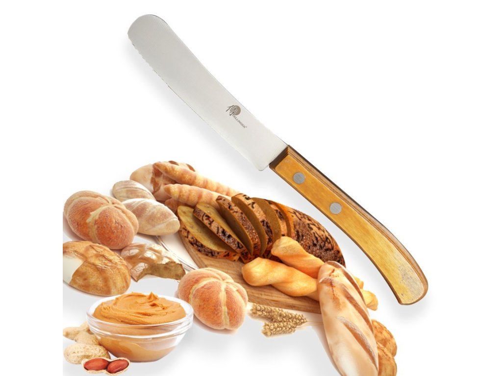 - Kombinovaná čepel: Rovné ostří pro snadné krájení pečiva a zoubkovaná zaoblená špička pro pohodlné roztírání másla a pomazánek.