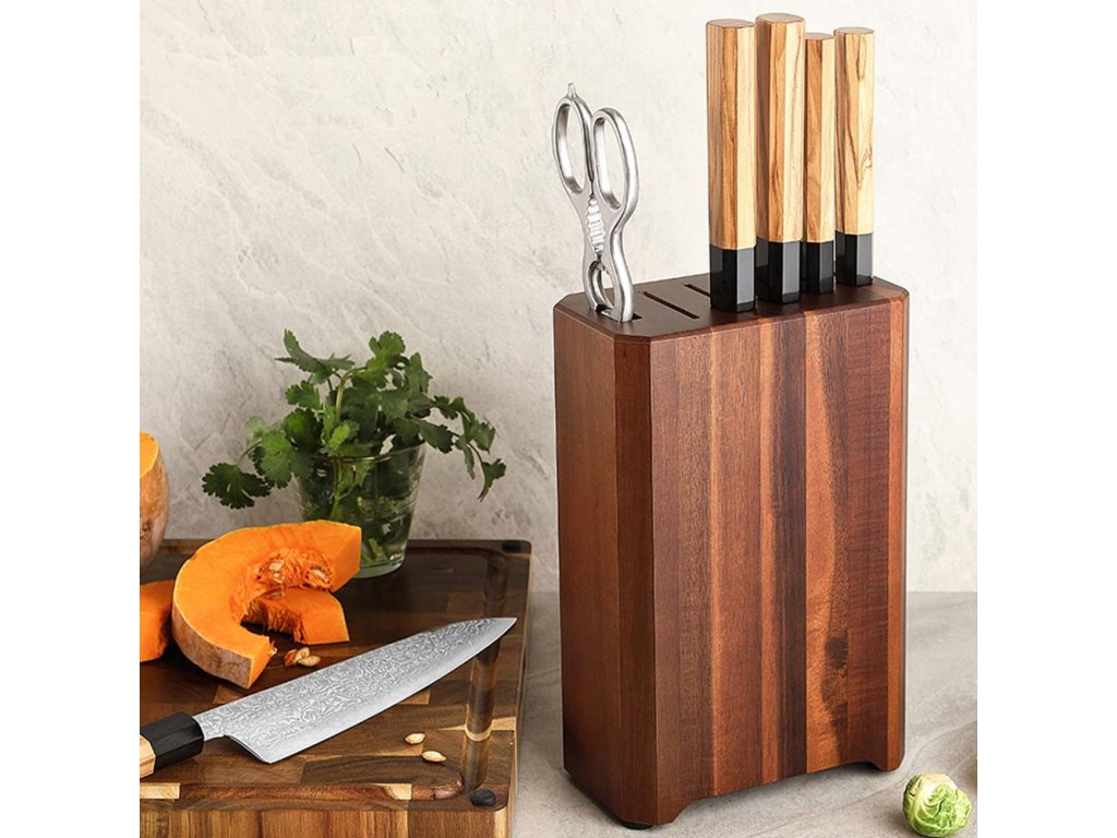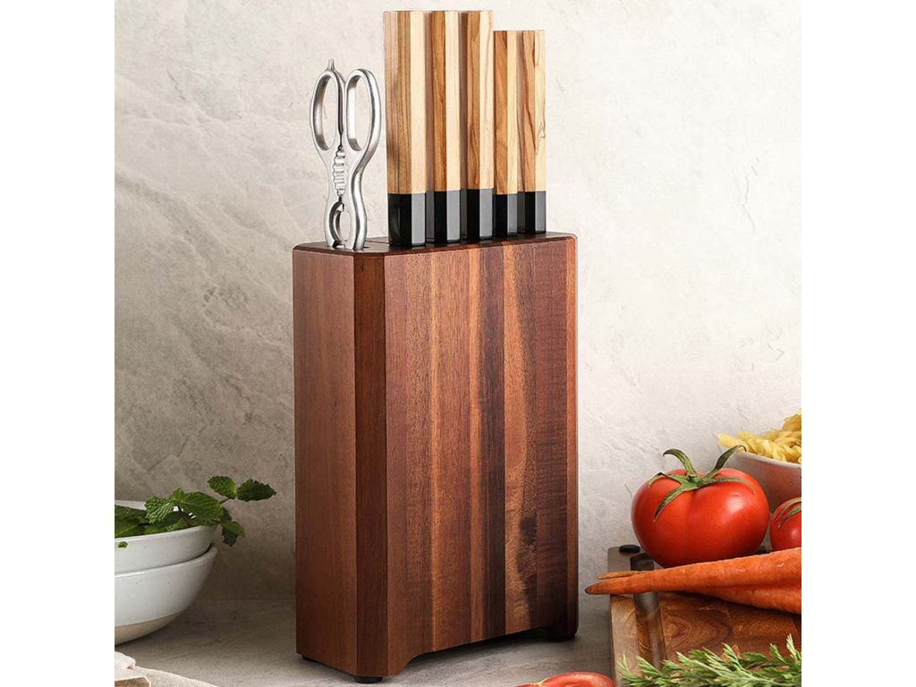 Stylový a funkční stojánek na 5 nožů a nůžky z akáciového dřeva