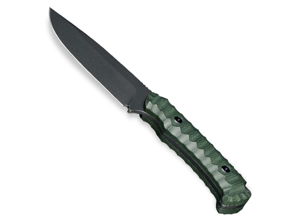 Taktický outdoorový nůž je dokonalou kombinací odolnosti, praktičnosti a precizního zpracování. Čepel je vyrobena z vysoce kvalitní nástrojové oceli DC53, která se vyznačuje vynikající tvrdostí, odolností vůči opotřebení a vysokou houževnatostí. Čepel je navíc opatřena povrchovou úpravou black coating, která zvyšuje odolnost proti korozi, minimalizuje odlesky a dodává noži atraktivní, taktický vzhled. Díky této úpravě a použité oceli je nůž schopný odolat extrémním podmínkám a dlouhodobému používání, což jej činí ideálním společníkem pro náročné outdoorové aktivity, bushcraft nebo survival. Ergonomická rukojeť z materiálu Micarta, která je zpracována do atraktivního zeleného vzoru, zajišťuje pevné a pohodlné uchopení i v nepříznivých podmínkách, jako je déšť nebo vlhkost. Texturovaný povrch rukojeti zabraňuje sklouznutí a poskytuje maximální kontrolu při práci. V zadní části je otvor pro paracord.