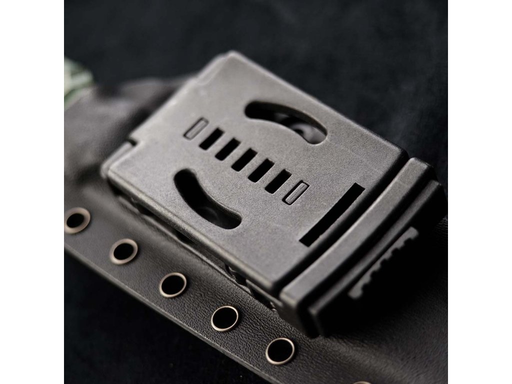 Nůž je dodáván s odolným kydexovým pouzdrem, které je vybaveno otvory pro univerzální upevnění na opasek, batoh nebo taktickou výbavu. Pouzdro pevně drží nůž na místě a zároveň umožňuje jeho snadné a rychlé vytažení, což oceníte v krizových situacích. Celkově jde o výjimečný nůž, který kombinuje moderní materiály, špičkové zpracování a funkční design. Povrchová úprava čepele, kvalitní ocel a ergonomická rukojeť z něj dělají skvělou volbu nejen pro dobrodružství v přírodě nebo každodenní používání, ale také pro profesionální nasazení v armádě a policejních složkách.