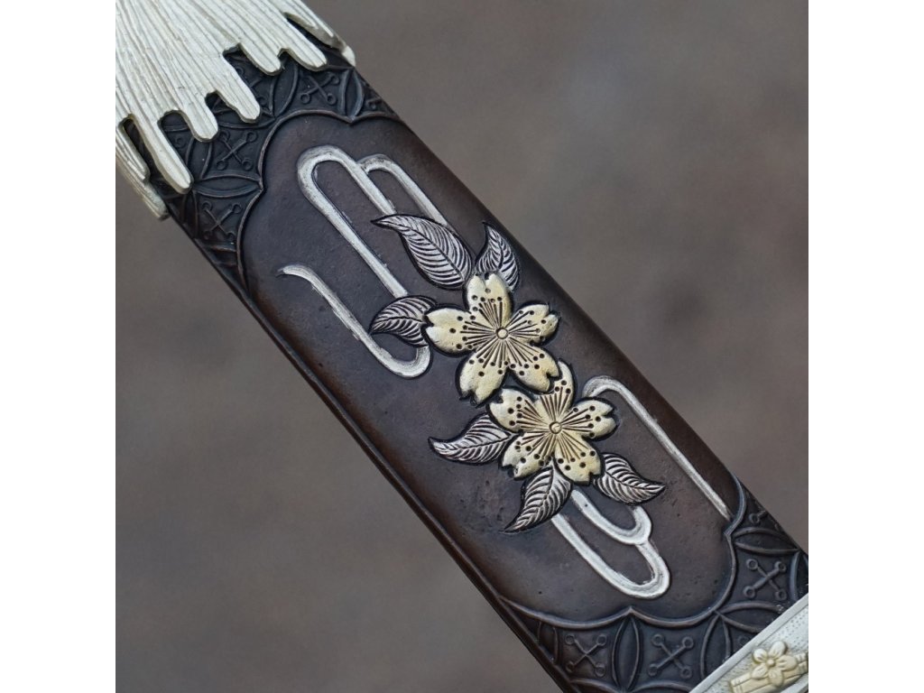 ✅ tsuka: (rukojeť) dřevěné jádro se zdobeným měděným povrchem