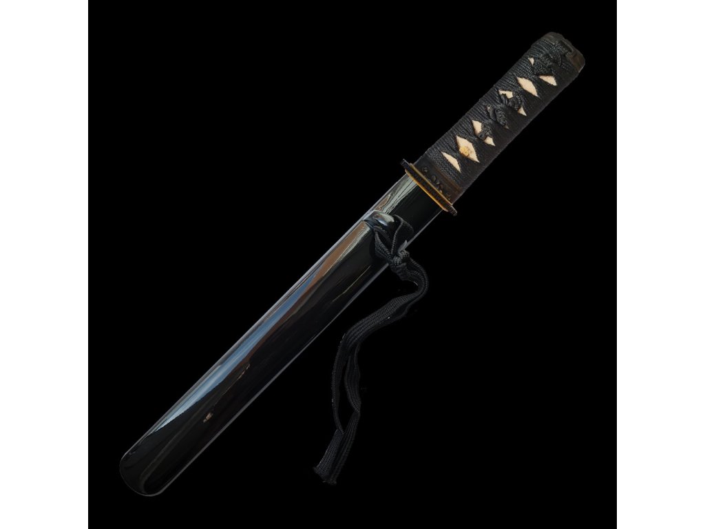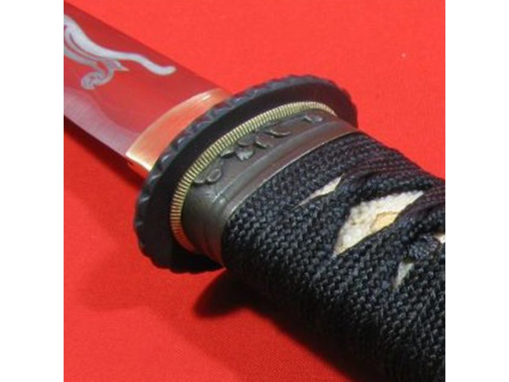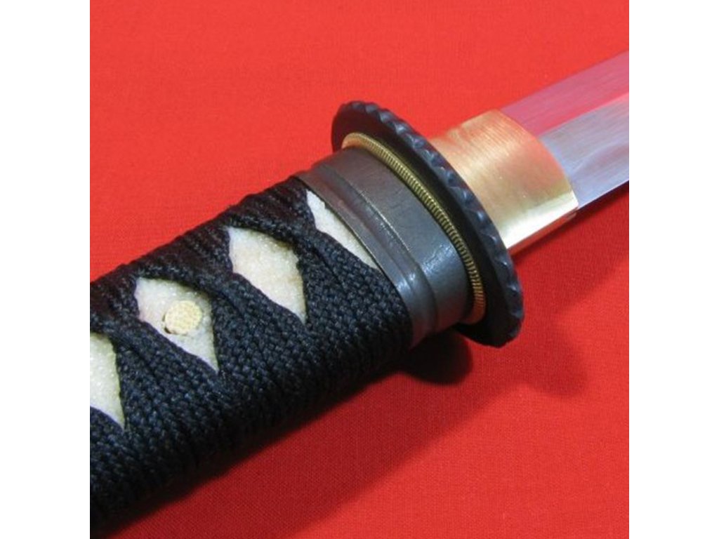 ✅ tsuka: (rukojeť) dřevěné jádro s vloženou pravou kůží z rejnoka (Samegawa) oplet ITO černé barvy. Čepel nože TANTO je zajištěna jedním bambusovým kolíkem (mekugi). Čepel od rukojeti můžete odmontovat vytažením tohoto kolíku. Na jedné straně Tsuky je menuki (ornament).