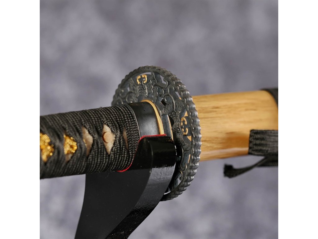 Tsuka: (rukojeť) dřevěné jádro s vloženou kůží z rejnoka (Samegawa) opletem černé barvy - Ito. Čepel wakizashi je zajištěna dvěma mekugi (kolíky). Čepel od rukojeti můžete odmontovat vytažením těchto kolíků. Na každé straně Tsuky je menuki (ornament).