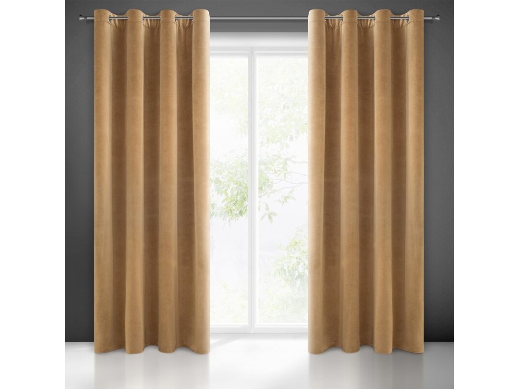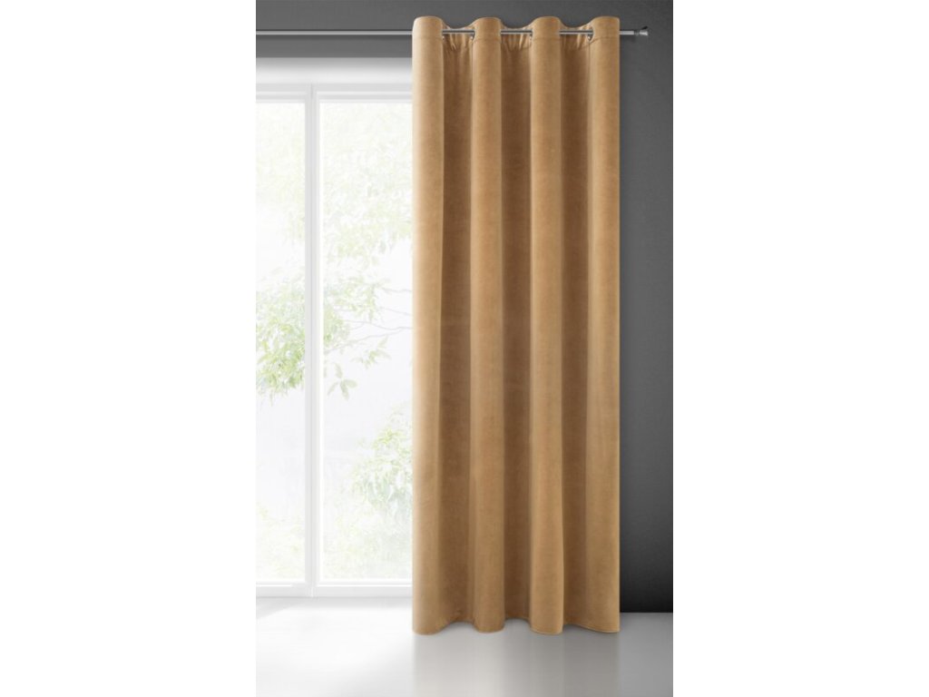 Welwetowa zasłona jednokolorowa szerokość: 140 cm, długość: 250 cm, kolor: MEDOVÝ, Gramatura: 330 GSM, Skład: 100% poliesterDoplňkové parametry
