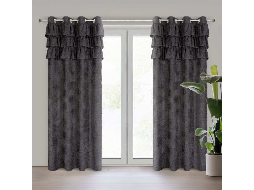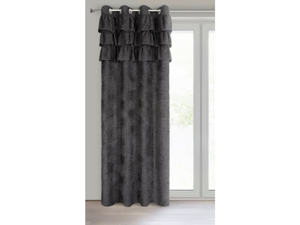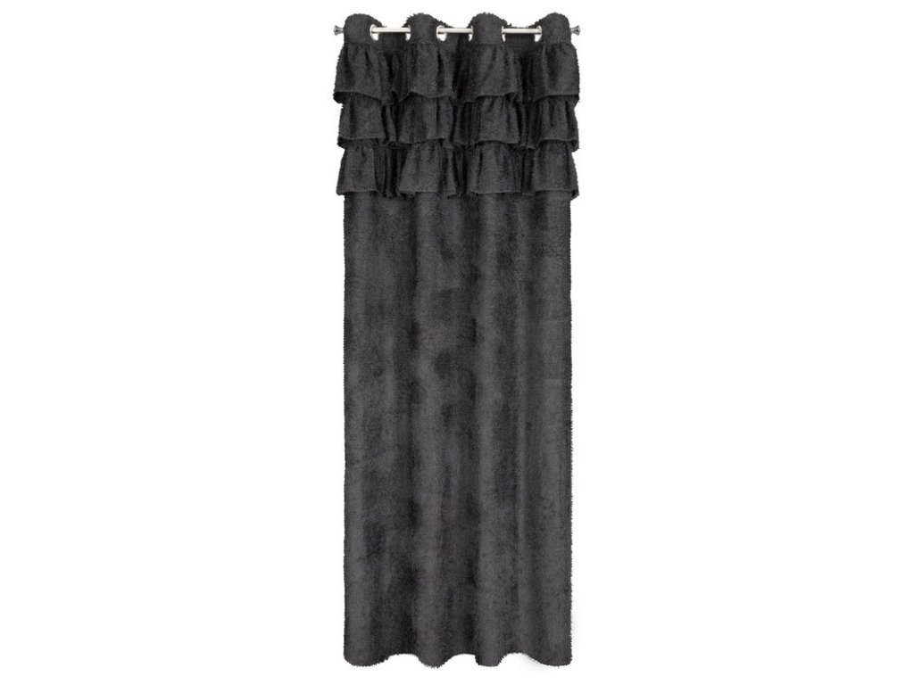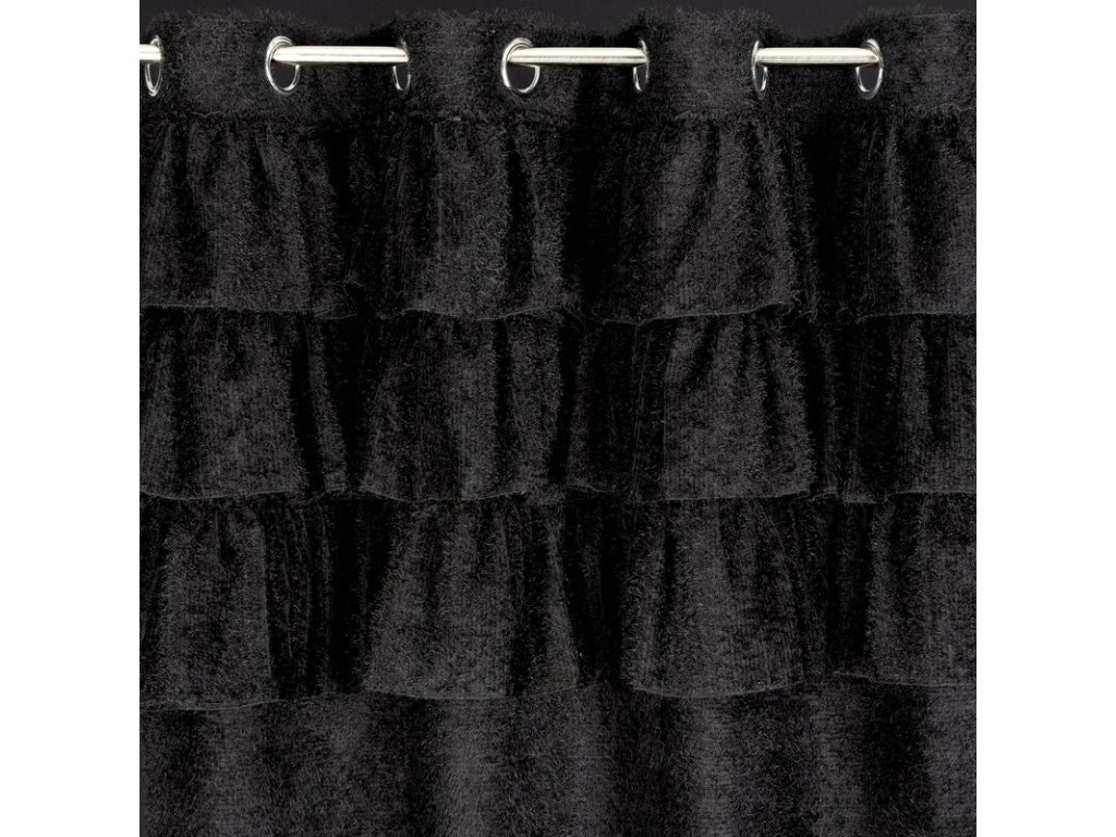 Zasłona gotowa z tkaniny moherowej z falbanami szerokość: 140 cm, długość: 250 cm, kolor: ČERNÝ, Gramatura: 110 GSM, Skład: 100% poliesterDoplňkové parametry