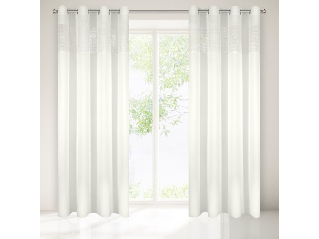Nowoczesna zasłona zdobiona dodatkami z eco skóry szerokość: 140 cm, długość: 250 cm, kolor: KRÉMOVÝ, Gramatura: 210 GSM, Skład: 100% poliesterDoplňkové parametry