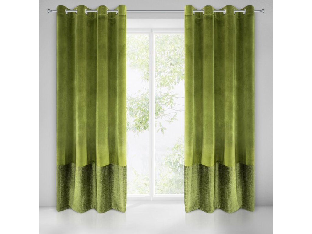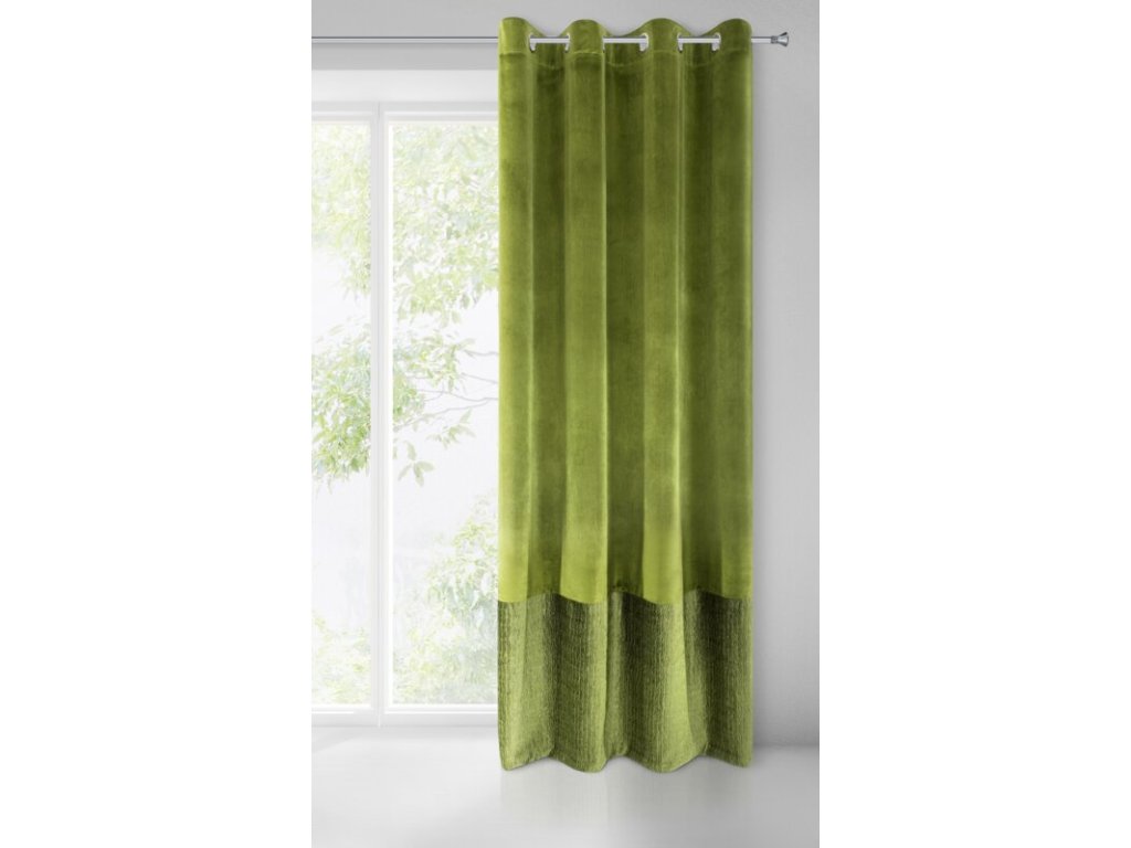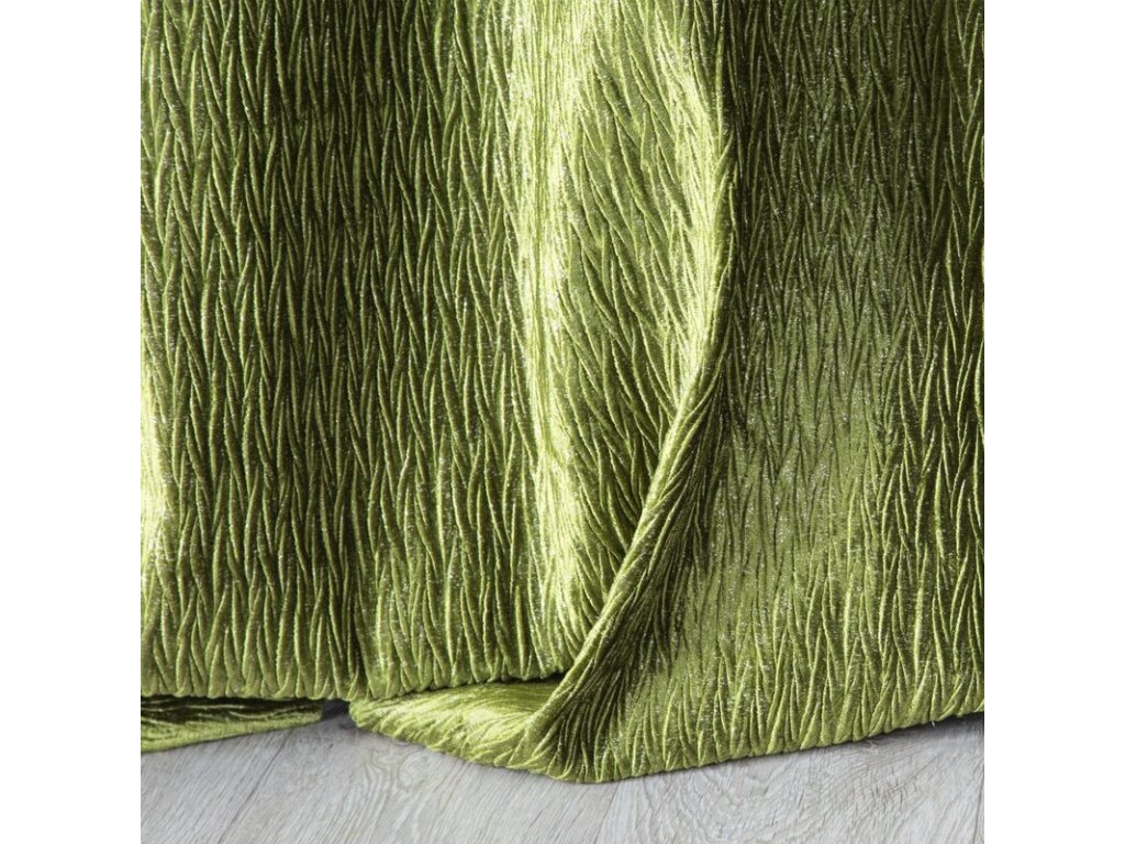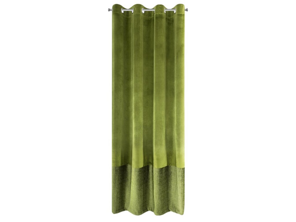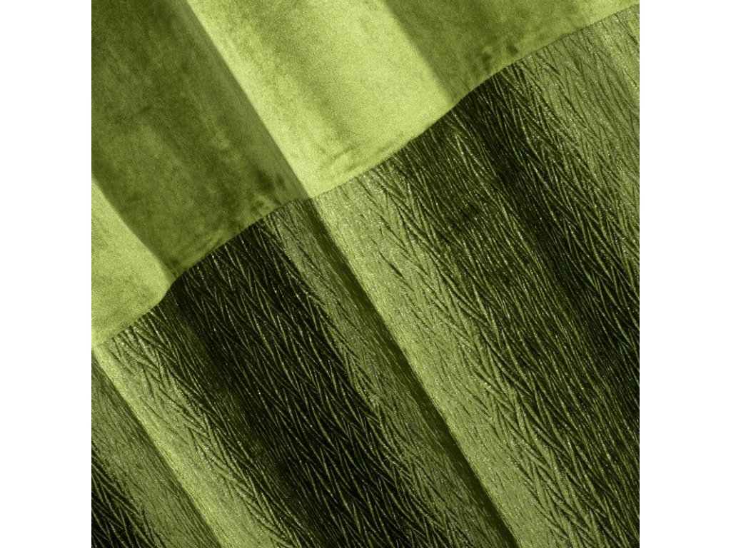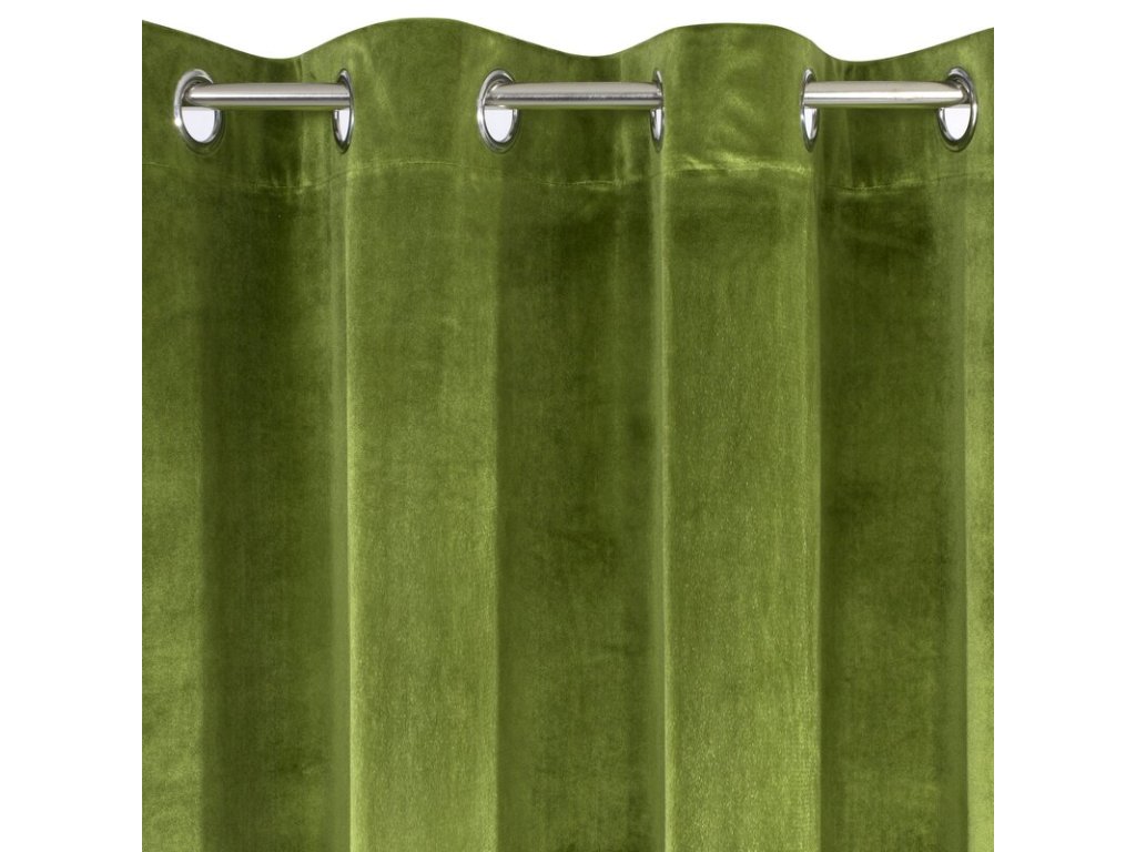 Gotowa zasłona welwetowa ze STŘÍBRNÝm nadrukiem oraz z marszczeniem szerokość: 140 cm, długość: 250 cm, kolor: OLIVOVÁ, Gramatura: 220+280 GSM, Skład: 100% poliesterDoplňkové parametry