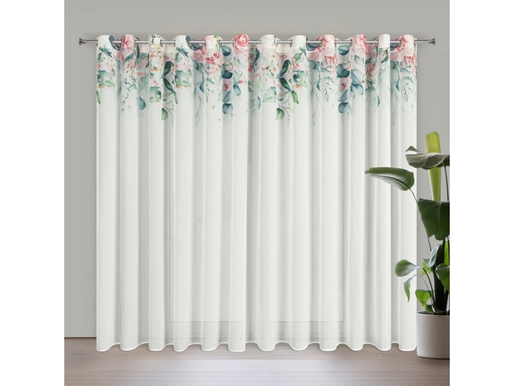 Zasłona gotowa z tkaniny szyfonowej z nadrukiem kwiatowym szerokość: 350 cm, długość: 250 cm, kolor: BÍLÝ, Gramatura: 90 GSM, Skład: 100% poliesterDoplňkové parametry