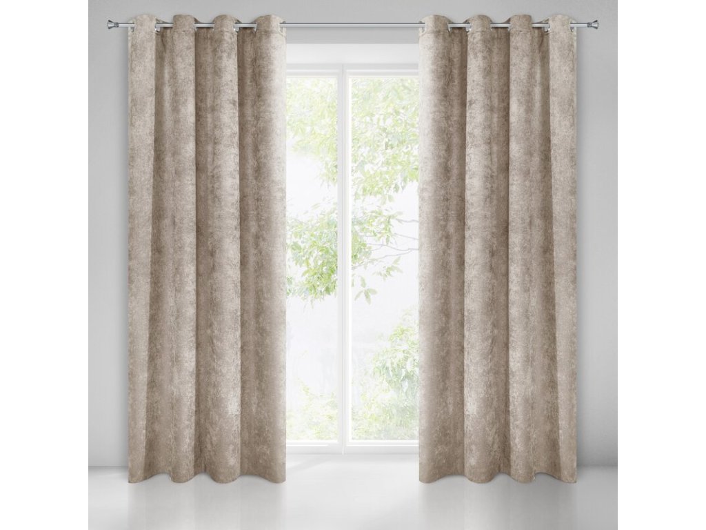 Zasłona gotowa jednokolorowa szenilowa szerokość: 140 cm, długość: 250 cm, kolor: TMAVĚ BÉŽOVÝ, Gramatura: 210 GSM, Skład: 100% poliesterDoplňkové parametry