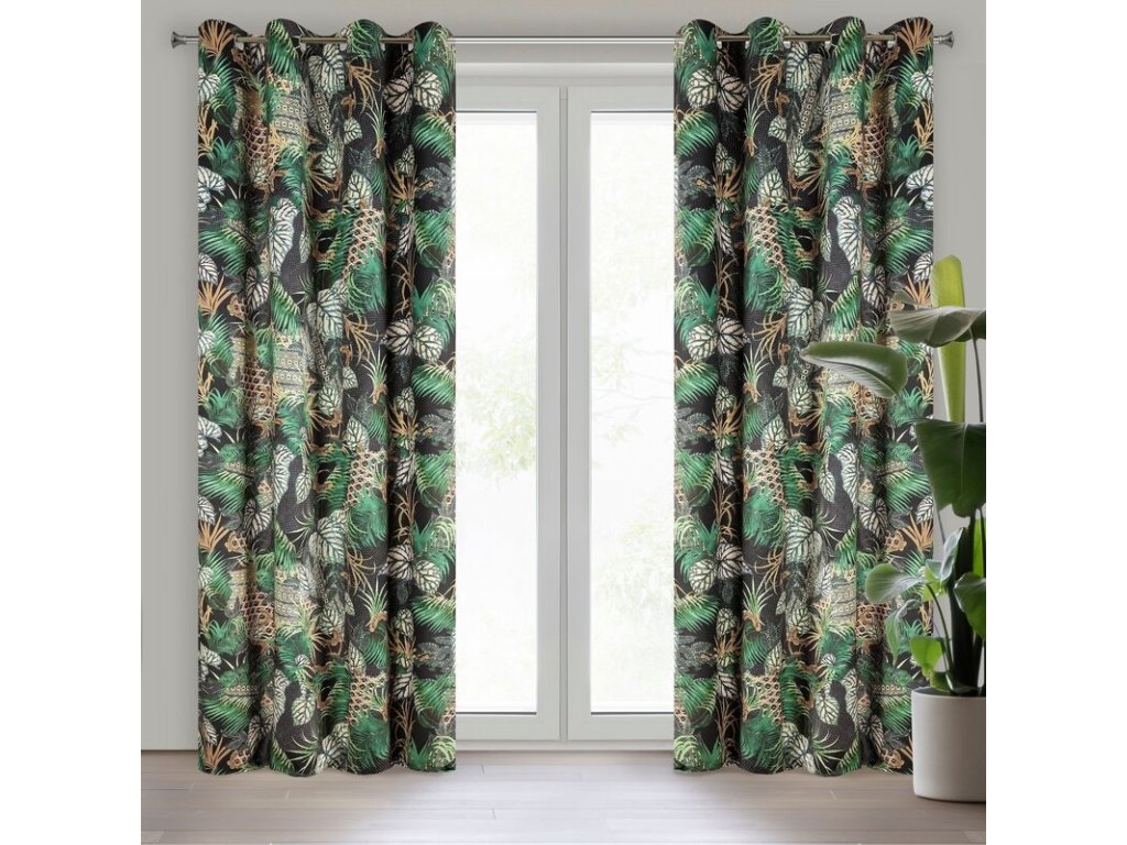 Zasłona welvetowa z nadrukiem szerokość: 140 cm, długość: 270 cm, kolor: ČERNÝ, Gramatura: 260 GSM, Skład: 100% poliesterDoplňkové parametry