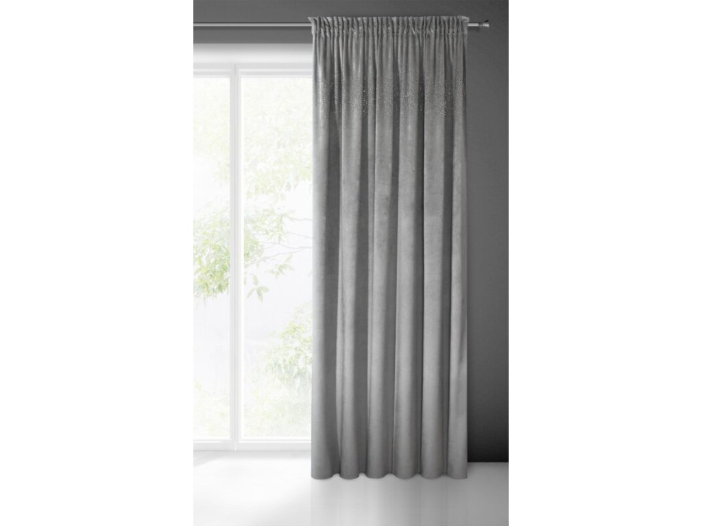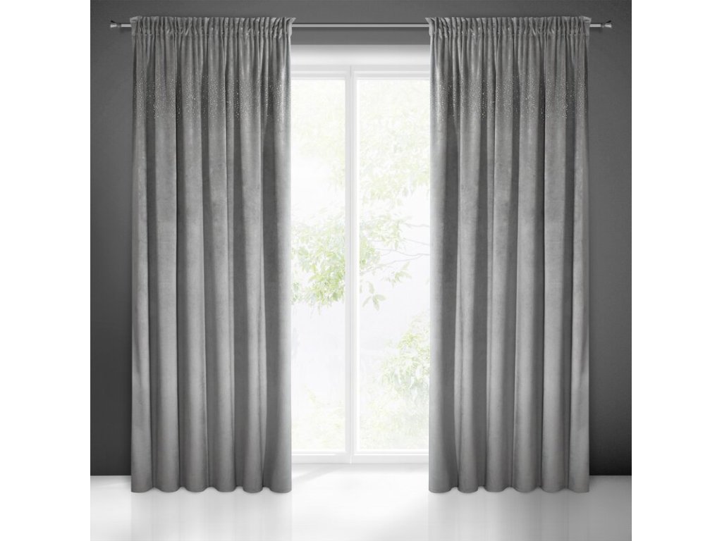 Zasłona welwetowa ze STŘÍBRNÝmi cyrkoniami szerokość: 140 cm, długość: 270 cm, kolor: OCELOVÝ, Gramatura: 215 GSM, Skład: 100% poliesterDoplňkové parametry