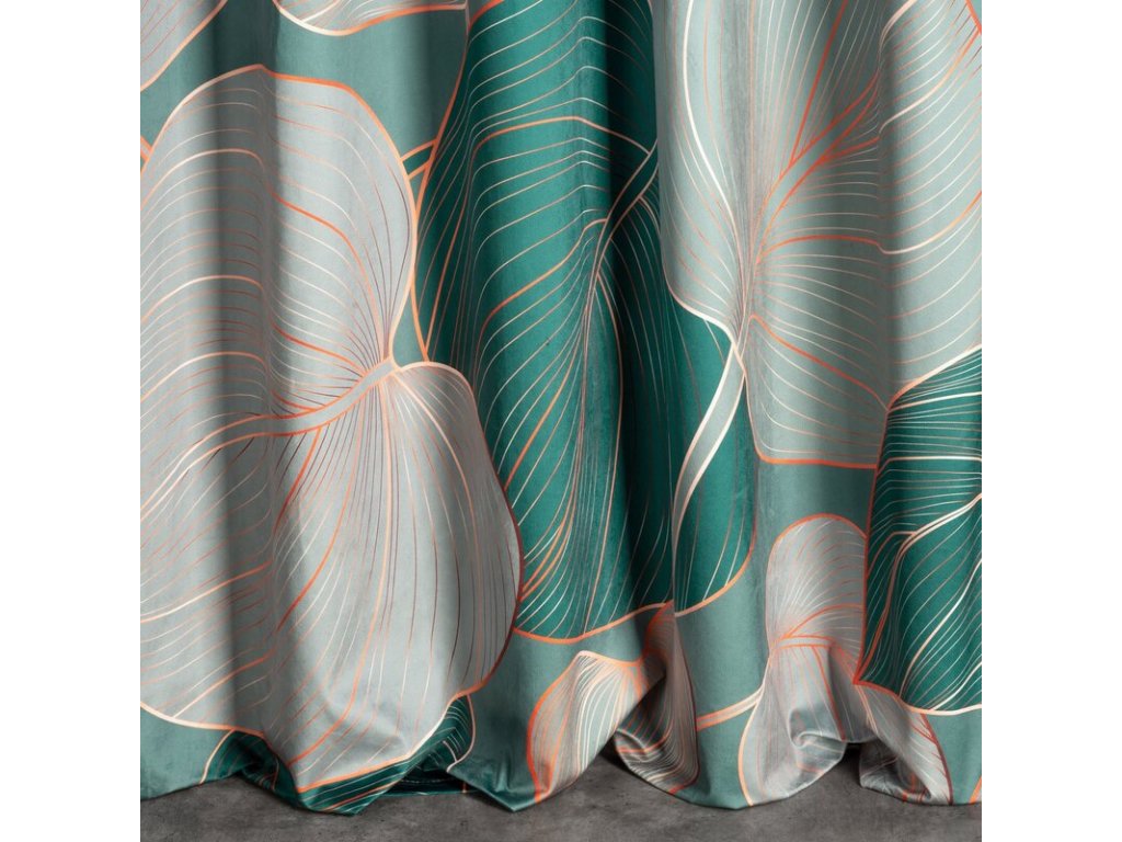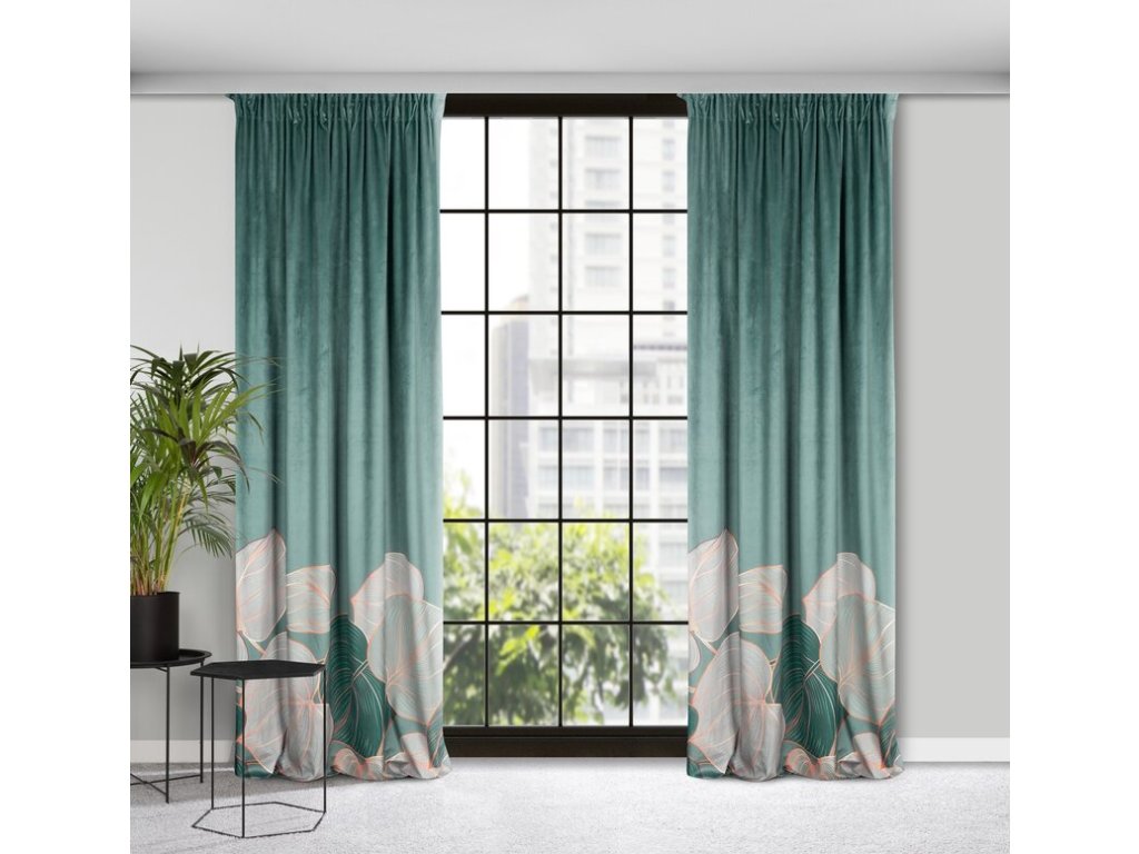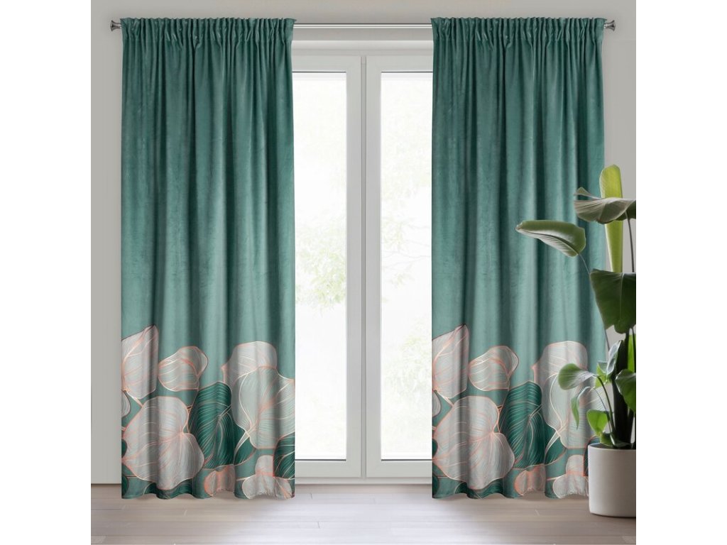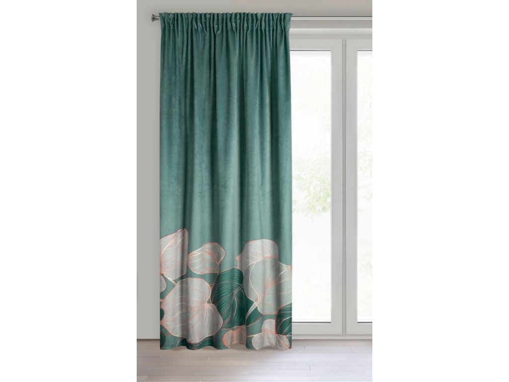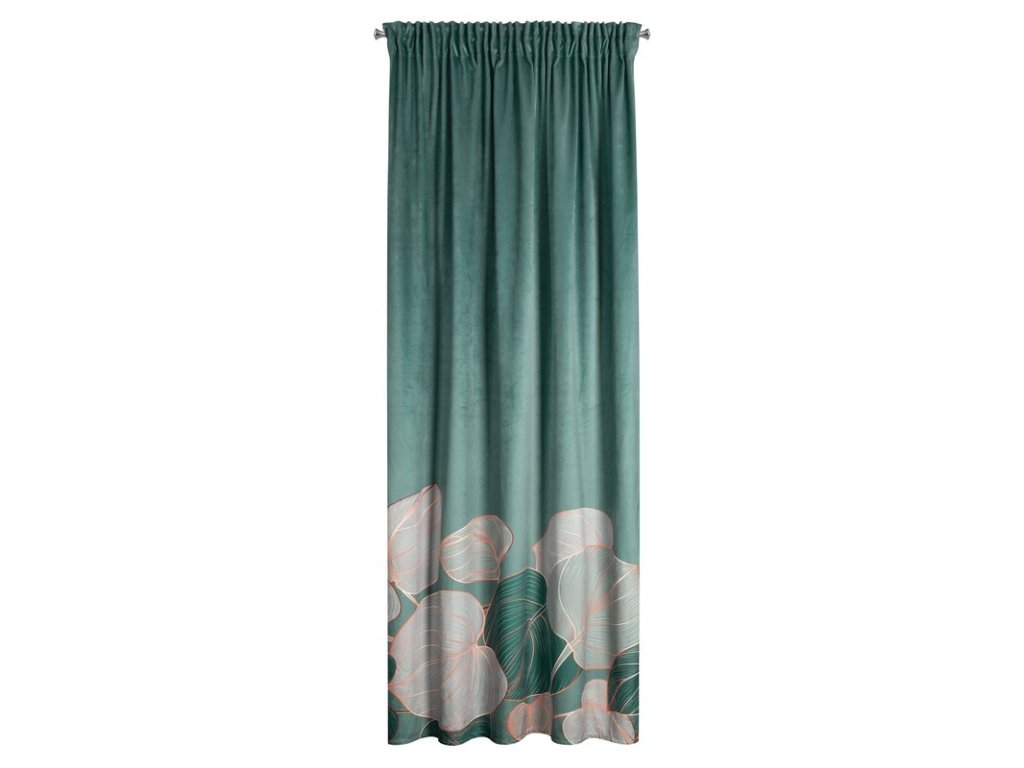 Zasłona gotowa welwetowa z nadrukiem szerokość: 140 cm, długość: 270 cm, kolor: ŠALVĚJOVÝ, Gramatura: 200 GSM, Skład: 100% poliesterDoplňkové parametry