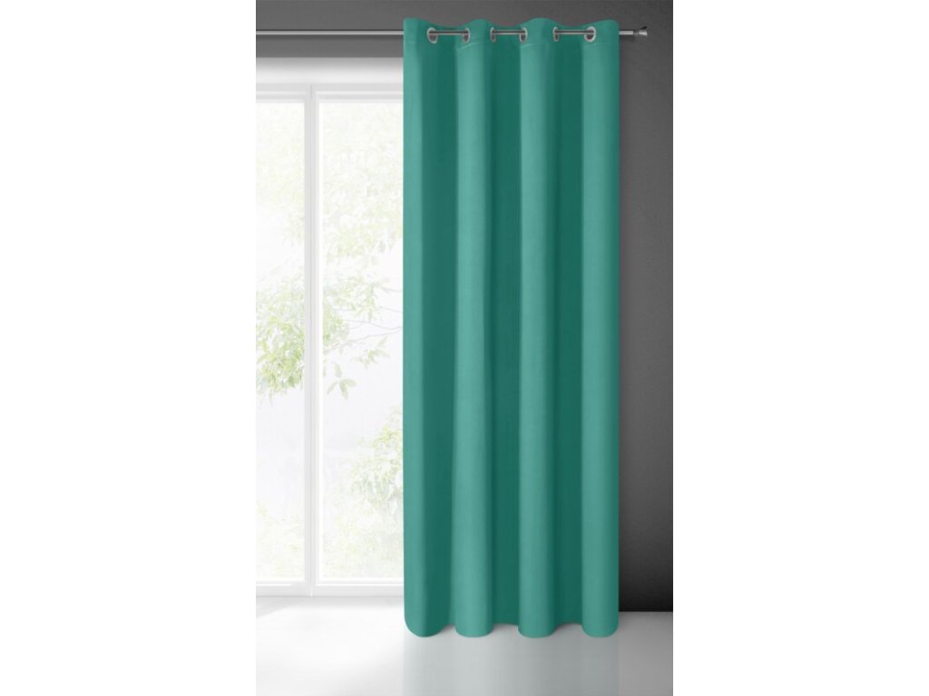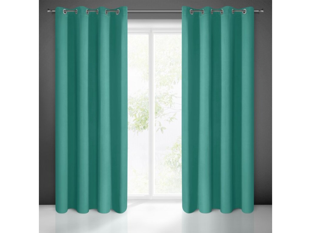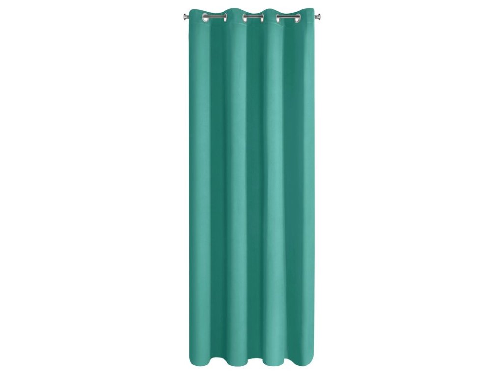 Zasłona gotowa zaciemniająca matowa szerokość: 135 cm, długość: 250 cm, kolor: TYRKYSOVÝ, Gramatura: 210 GSM, Skład: 100% poliesterDoplňkové parametry