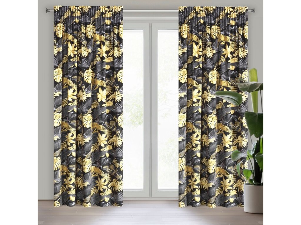 Zasłona welwetowa z nadrukiem szerokość: 140 cm, długość: 270 cm, kolor: ČERNÝ, Gramatura: 200 GSM, Skład: 100% poliesterDoplňkové parametry