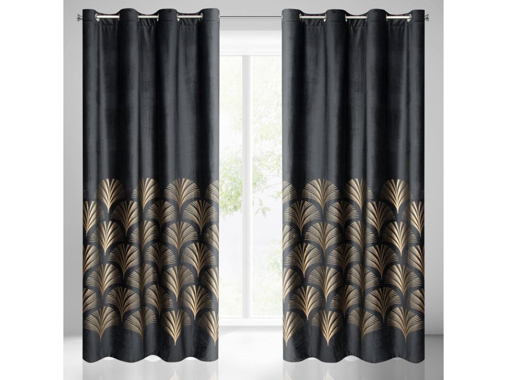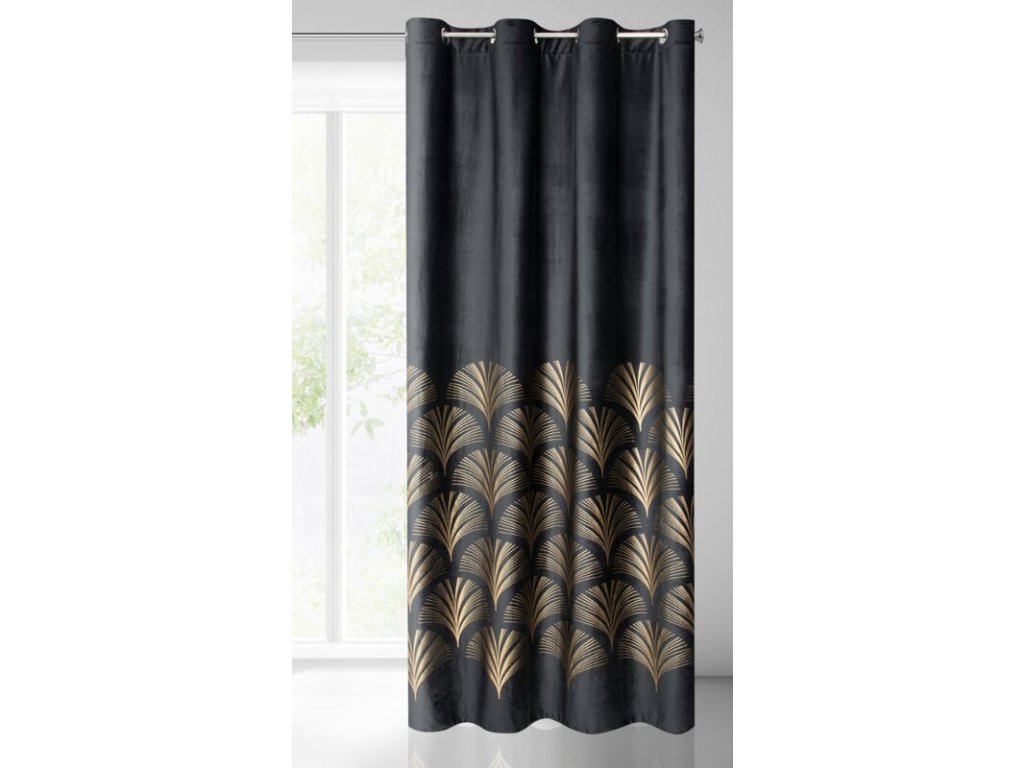 Zasłona welwetowa ze SVĚTLE ZLATÝm nadrukiem szerokość: 140 cm, długość: 250 cm, kolor: ČERNÝ, Gramatura: 290 GSM, Skład: 100% poliesterDoplňkové parametry