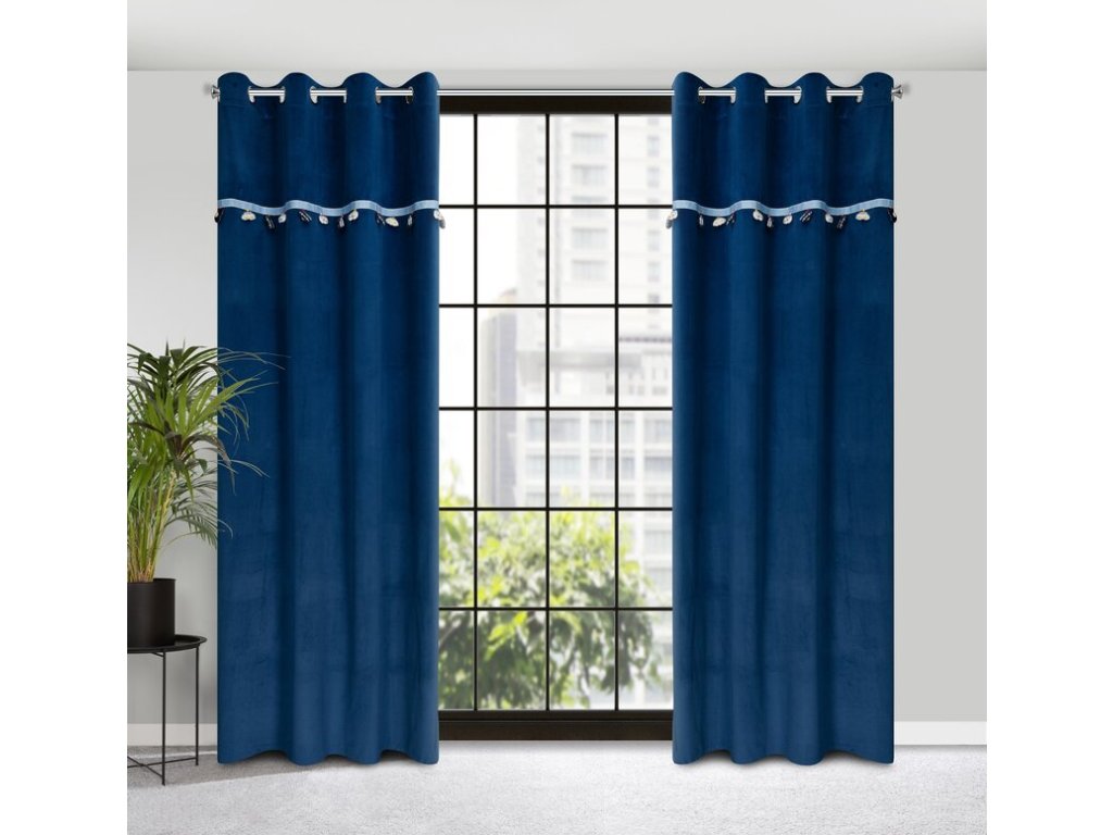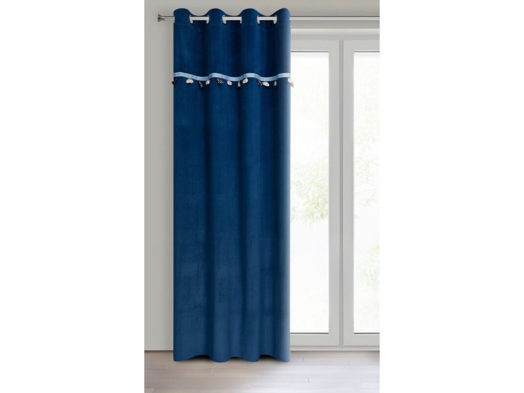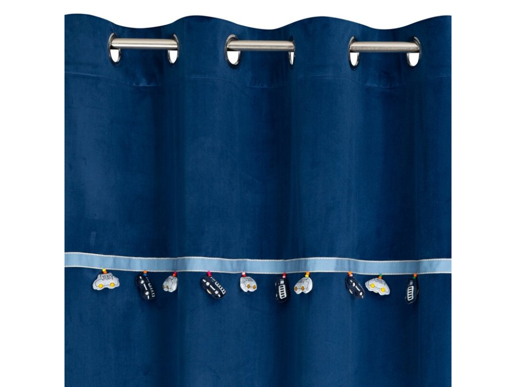 Zasłona gotowa z wszytą taśmą dekoracyjną z motywem dziecięcym szerokość: 140 cm, długość: 250 cm, kolor: NÁMOŘNICKÁ MODRÁ, Gramatura: 200 GSM, Skład: 100% poliesterDoplňkové parametry