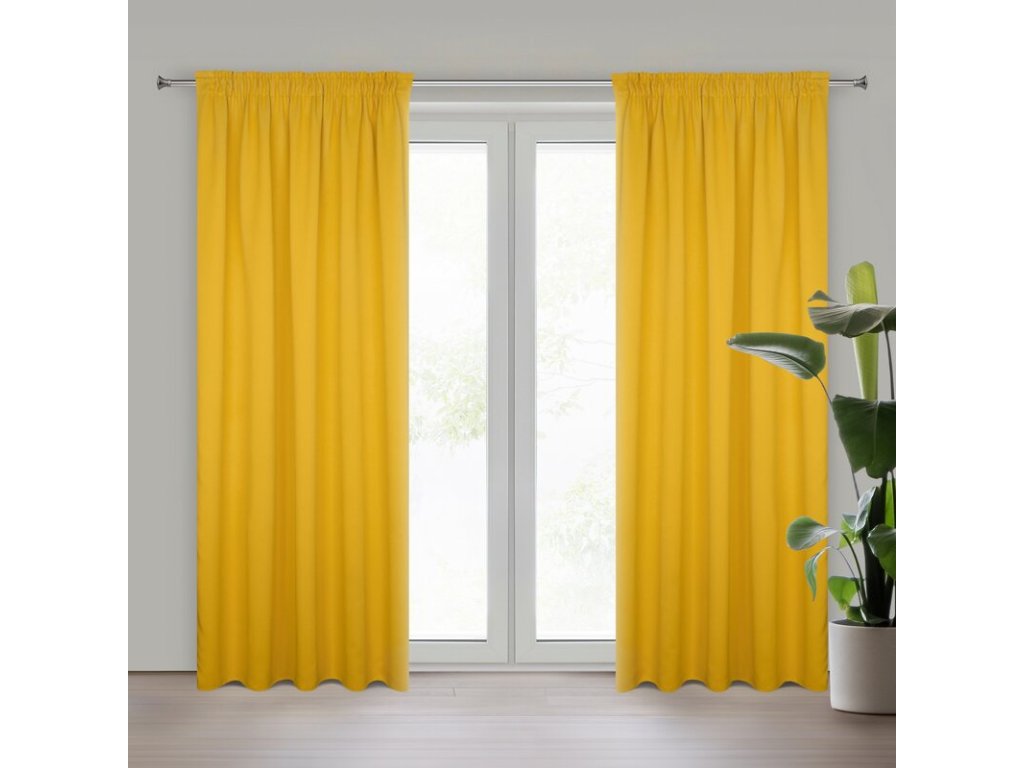 Zasłona zaciemniająca z mięsistej tkaniny typu blackout. Doskonała izolacja cieplna i akustyczna wnetrza. Jednokolorowa zasłona o minimalistycznym designie. szerokość: 135 cm, długość: 270 cm, kolor: HOŘČICOVÝ, Gramatura: 210 GSM, Skład: 100% poliesterDoplňkové parametry
