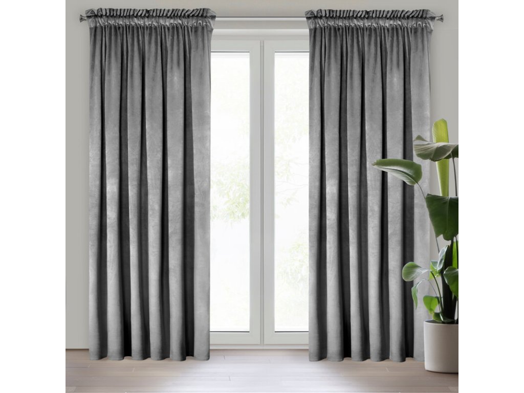 Zasłona welwetowa jednokolorowa szerokość: 135 cm, długość: 300 cm, kolor: OCELOVÝ, Gramatura: 200 GSM, Skład: 100% poliesterDoplňkové parametry