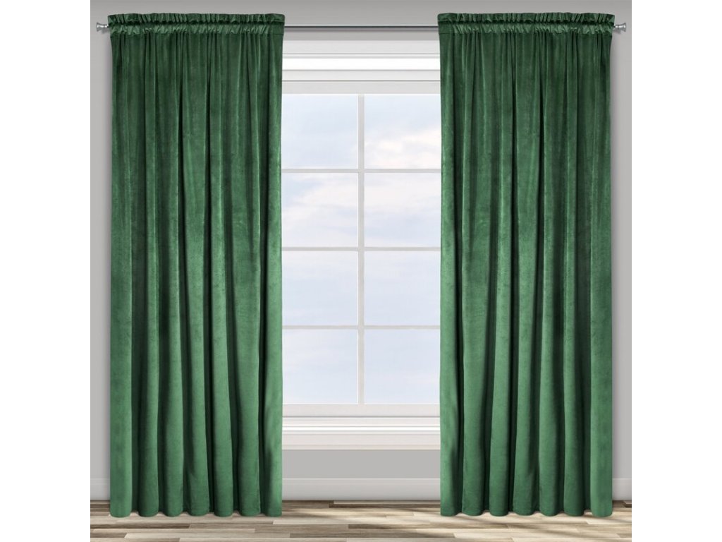 Zasłona welwetowa jednokolorowa szerokość: 140 cm, długość: 270 cm, kolor: TMAVĚ ZELENÝ, Gramatura: 200 GSM, Skład: 100% poliesterDoplňkové parametry
