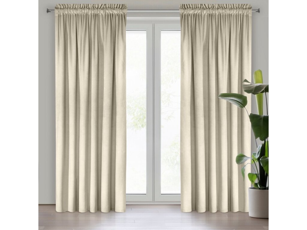 Zasłona welwetowa jednokolorowa szerokość: 140 cm, długość: 270 cm, kolor: KRÉMOVÝ, Gramatura: 200 GSM, Skład: 100% poliesterDoplňkové parametry
