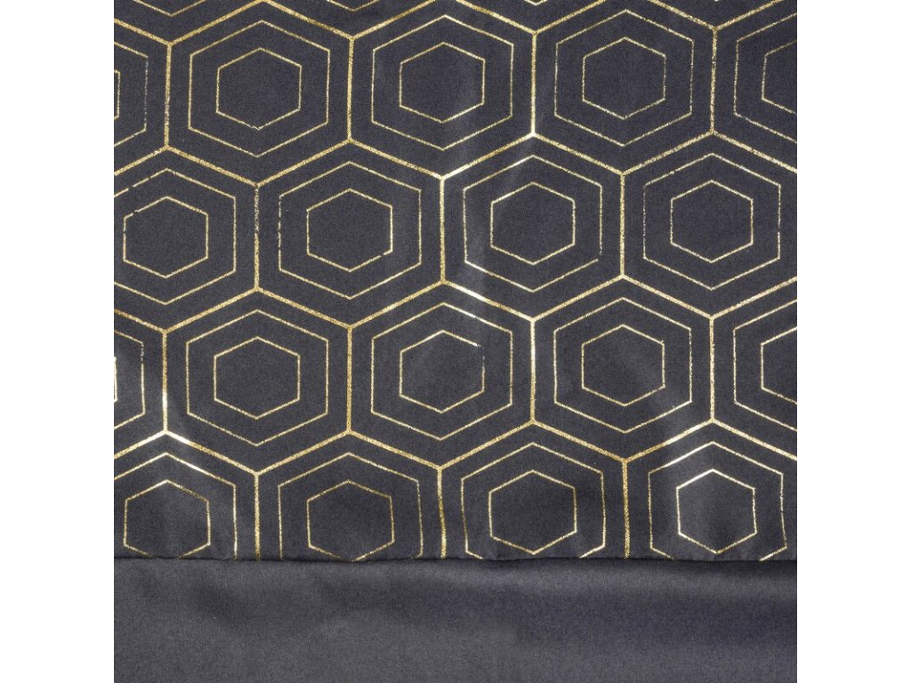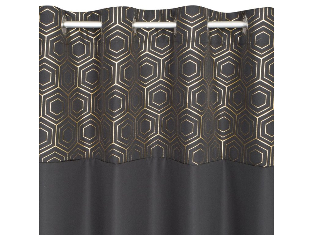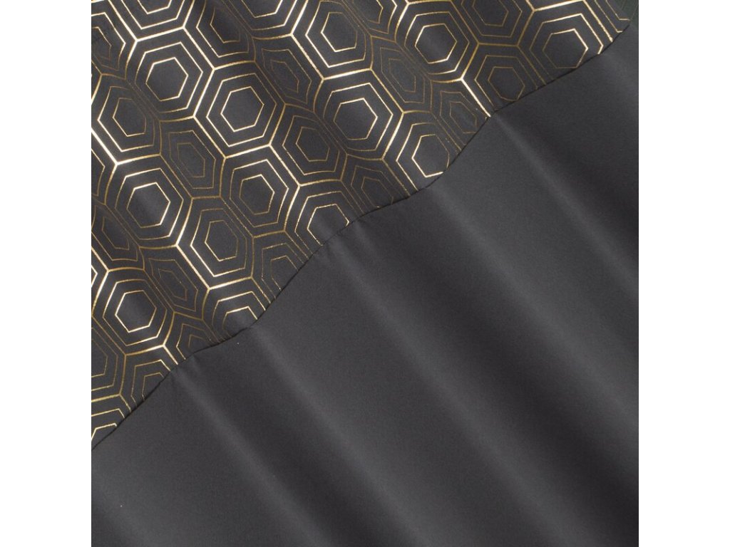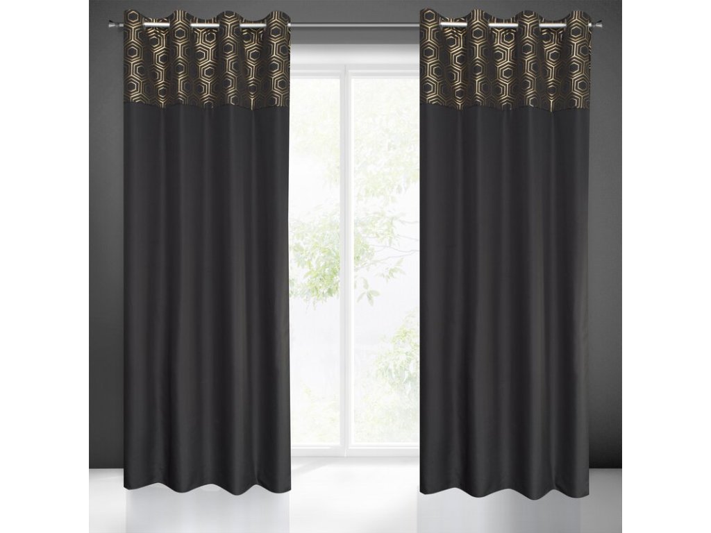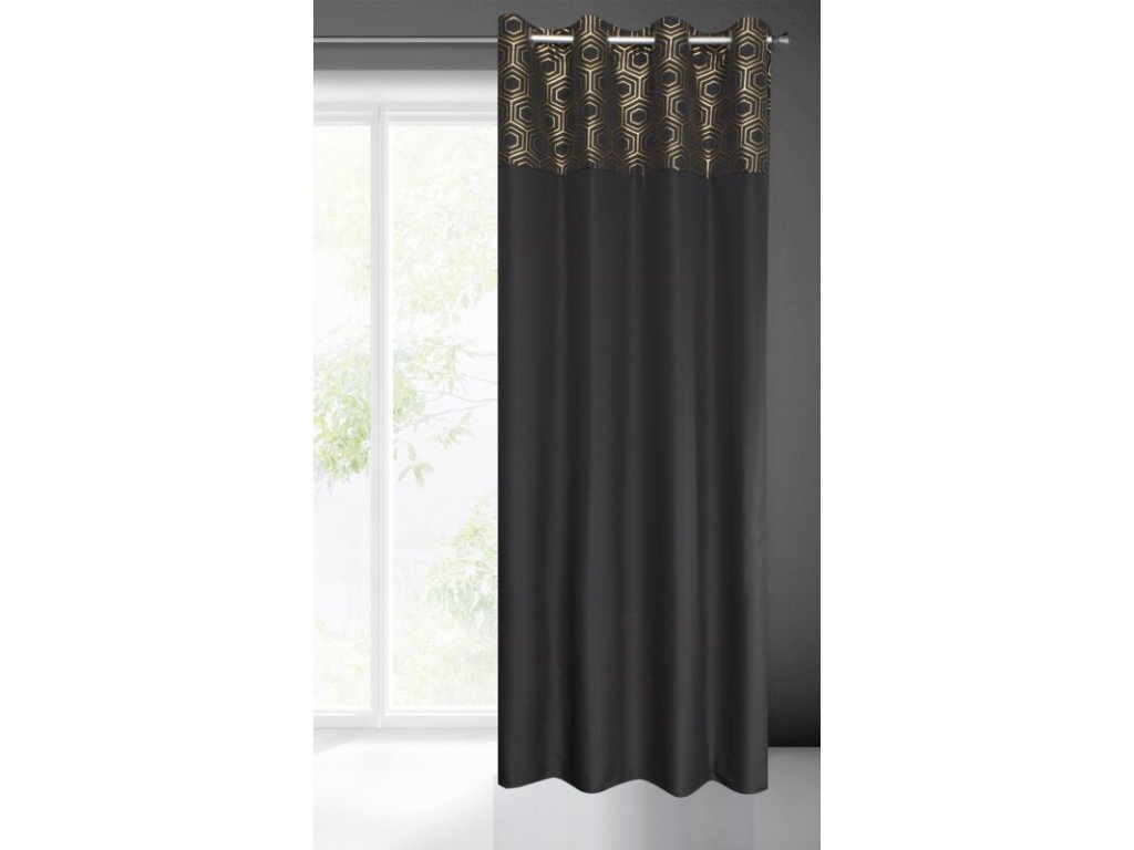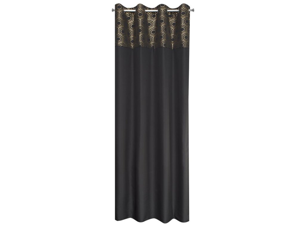 Zasłona gotowa ze SVĚTLE ZLATÝm nadrukiem szerokość: 140 cm, długość: 240 cm, kolor: ČERNÝ, Gramatura: 140 GSM, Skład: 100% poliesterDoplňkové parametry