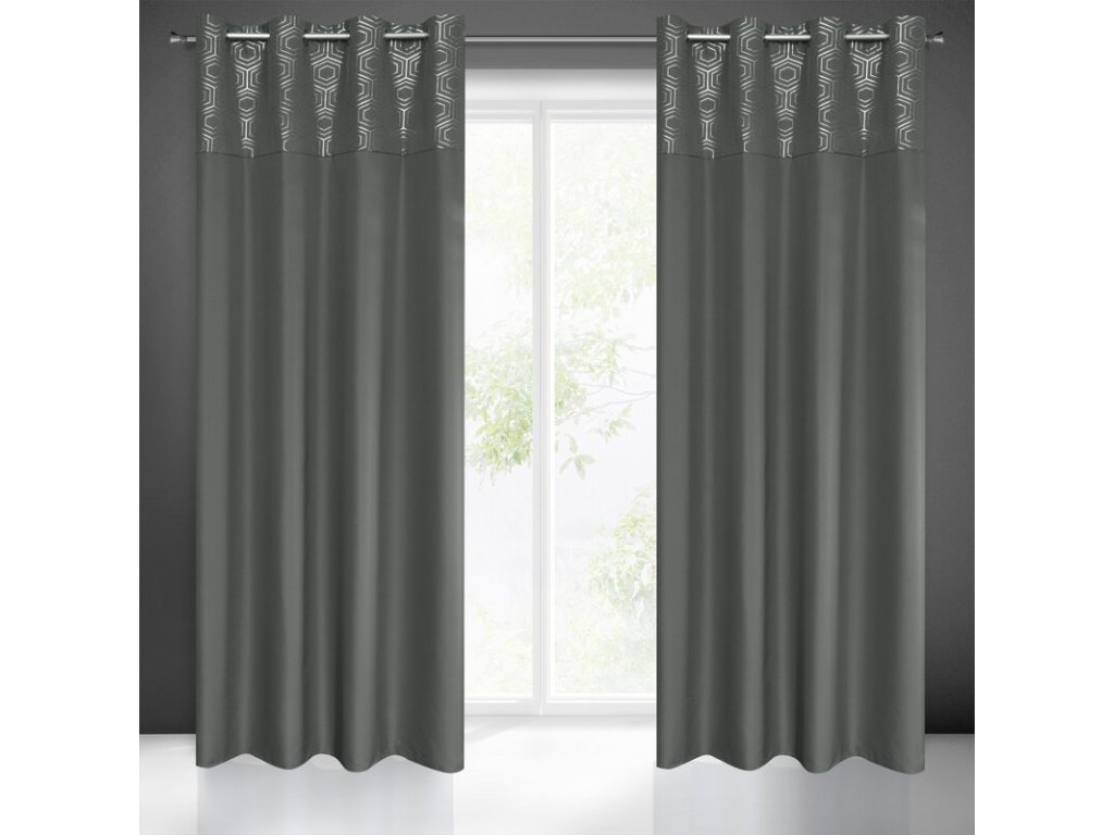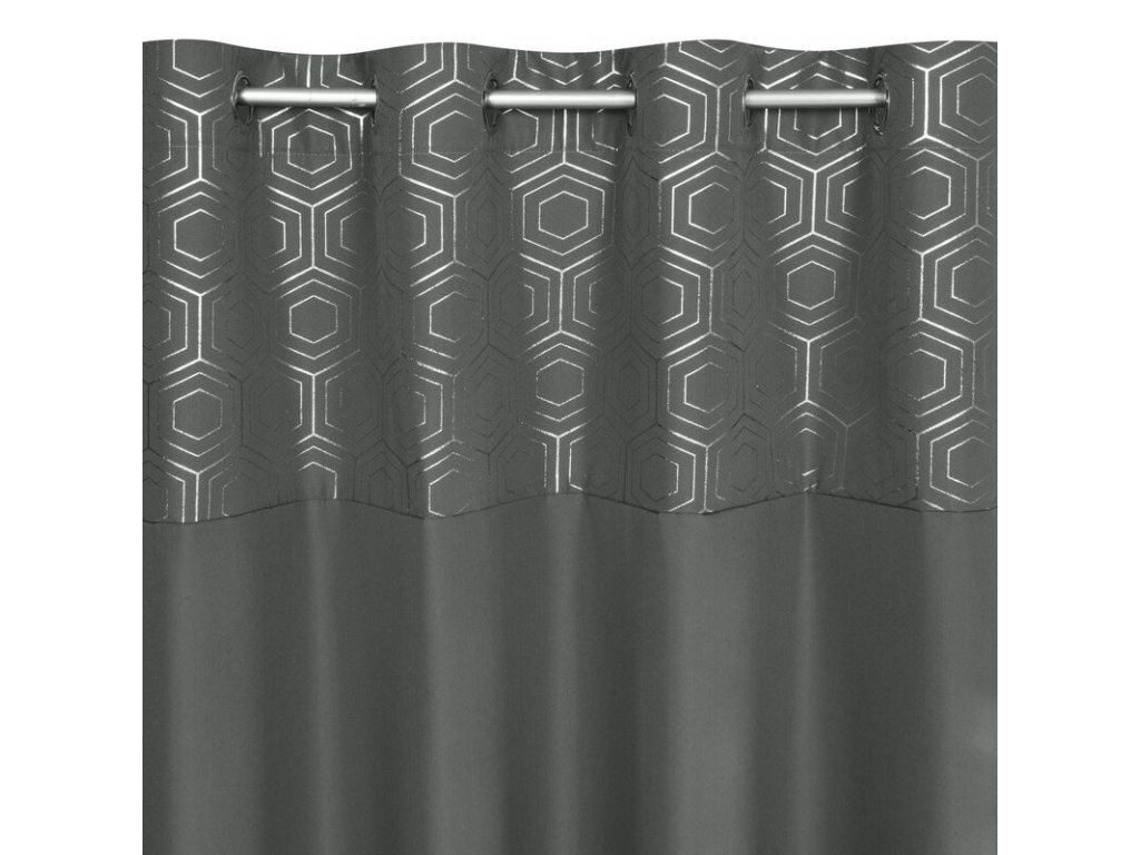 Zasłona gotowa ze STŘÍBRNÝm nadrukiem szerokość: 140 cm, długość: 240 cm, kolor: GRAFITOVÝ, Gramatura: 140 GSM, Skład: 100% poliesterDoplňkové parametry