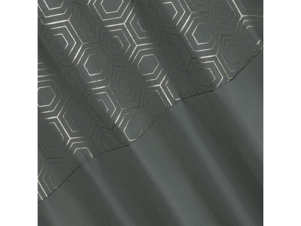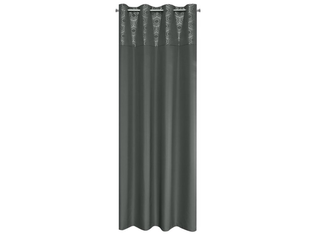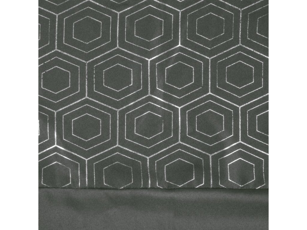 Zasłona gotowa ze STŘÍBRNÝm nadrukiem szerokość: 140 cm, długość: 250 cm, kolor: GRAFITOVÝ, Gramatura: 140 GSM, Skład: 100% poliesterDoplňkové parametry