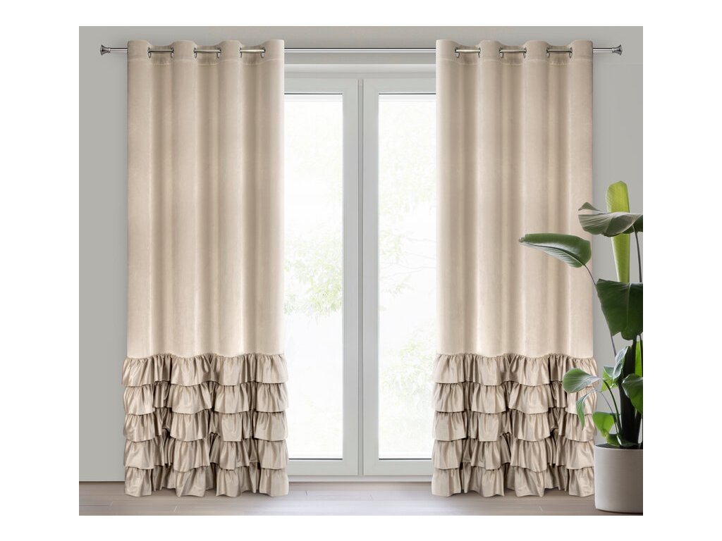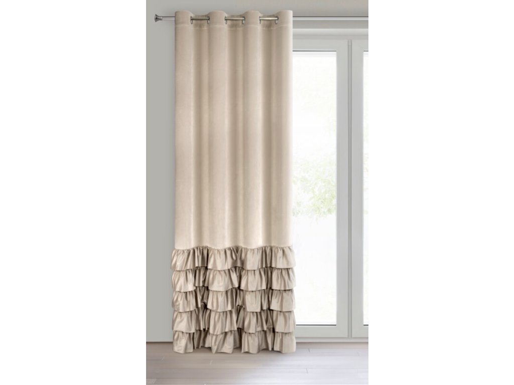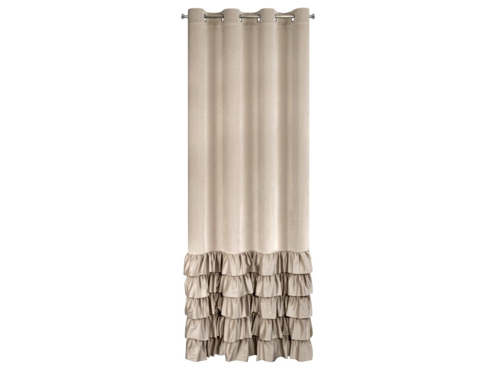 Zasłona gotowa welwetowa z falbanami od dołu szerokość: 140 cm, długość: 250 cm, kolor: BÉŽOVÝ, Gramatura: 200 GSM, Skład: 100% poliesterDoplňkové parametry